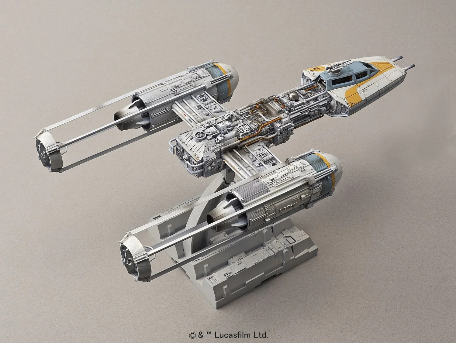 Out of Star Wars: Episode IV - A New Hope, at the Battle of Yavin the Y-Wing Starfighter makes its debut in the 1/72 scale! The detailing for this vehicle has been thoroughly adapted in scale to bring incredible realism. The inner cockpit and ion propulsion engine have been fine tuned and the added Death Star motif display base increases quality of display. A nipper or sprue cutter (sold separately) is required for assembly, but the kit does not require glue.