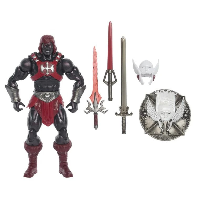- Box Contents: Anti-Eternia He-Man figure, Helmet, Shield, & 3 Swords