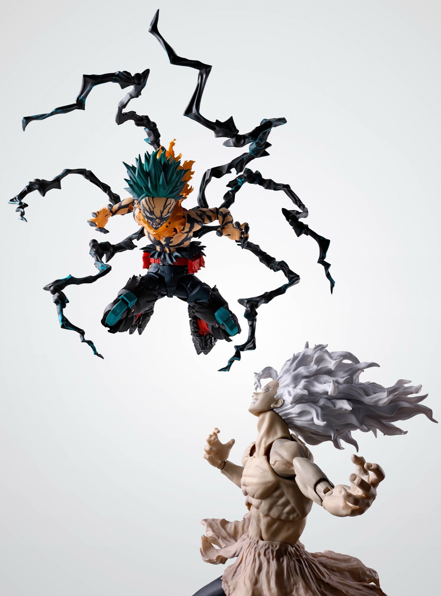 ""Overlay Deku"" from the TV anime ""My Hero Academia"" is joining the S.H.Figuarts lineup! The Blackwhip tendrils spread across his body are recreated with precise coloring. This rendition of Deku features further upgraded articulation to achieve iconic crouching poses. Additionally, the Blackwhip on his back features articulated joints, allowing for dynamic action poses. [Set Contents] Main body, Exchaneable right hand x3, Exhangeable left hand x3, Exchangeable expression parts x3, Black whip parts set