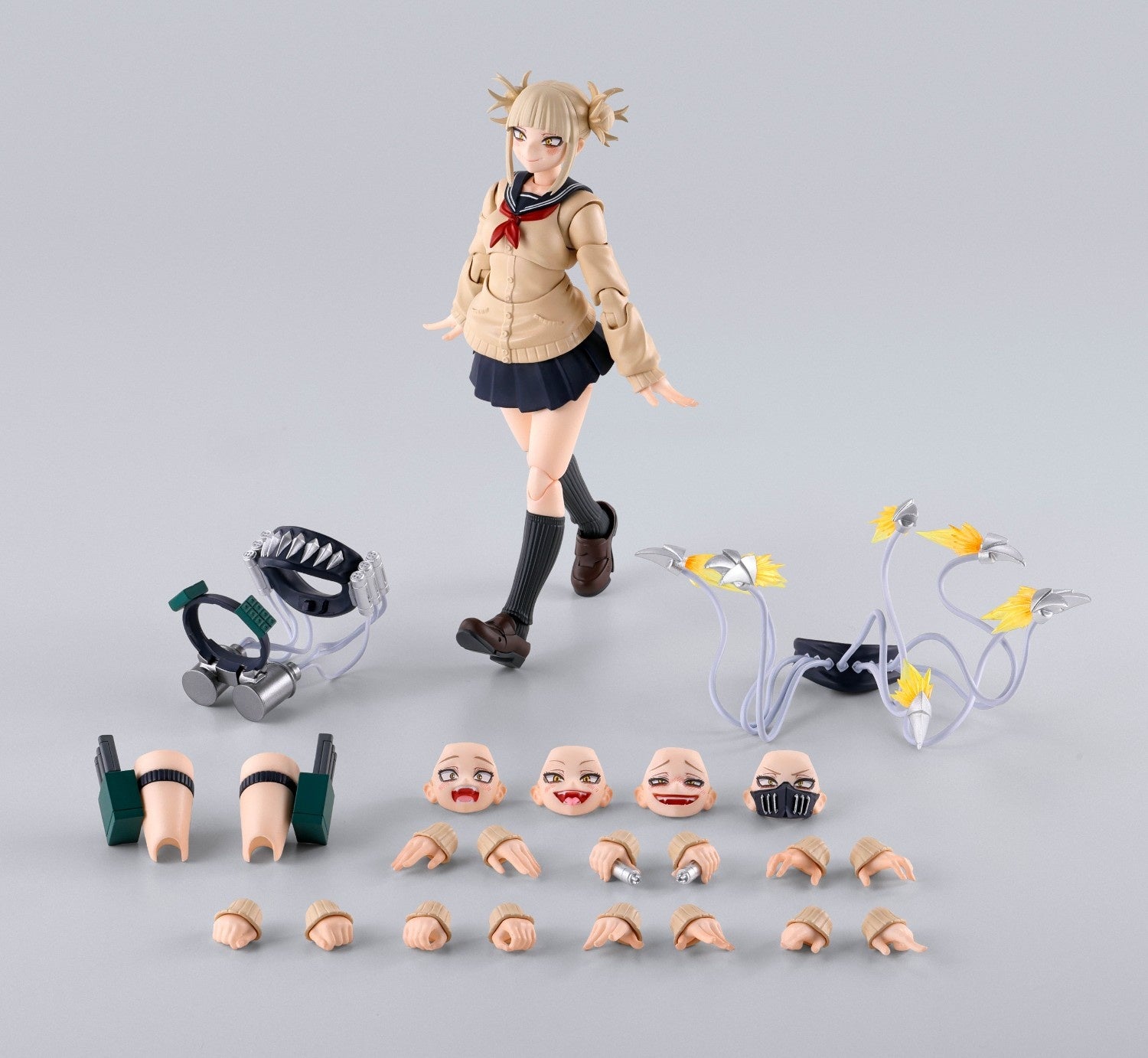 From My Hero Academia, the villain HIMIKO TOGA arrives in S.H.Figuarts! Utilizing the S.H.Figuarts articulation technology and meticulous coloting, this figure fully captures the unsettling yet cute charm of HIMIKO TOGA! [Set Contents] Main body, 7 sets of optional hand parts left/right, 4 optional face parts, exchangeable thigh parts, set of option parts, set of exchangeable effect parts