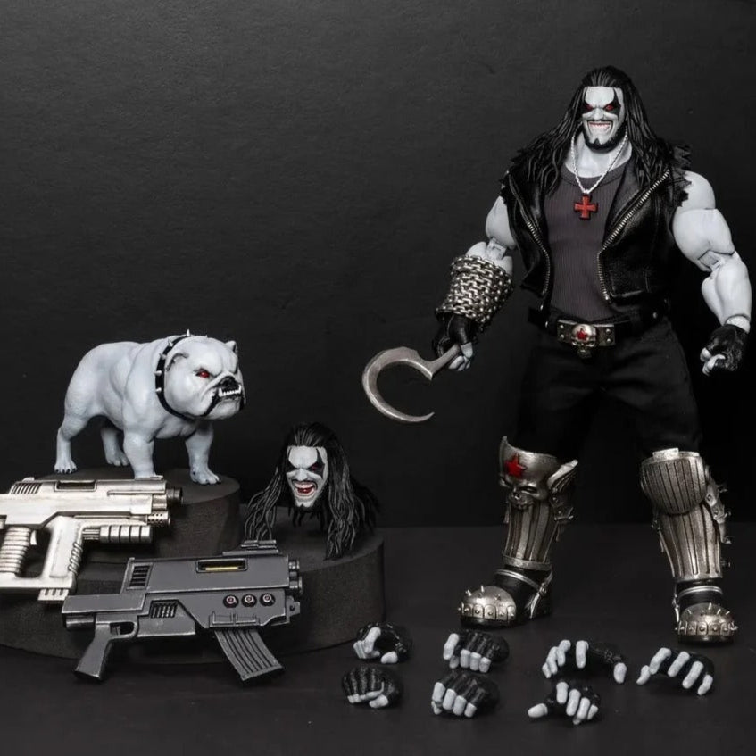 The DX version amps up the carnage with two head sculpts, interchangeable hands, signature weapons, and complete with his loyal bulldog, Dawg. This figure measures approximately 8-inches tall with approximately 20 points of artiulation. Accessories included are a signature metal-style jacket with real fabric elements, 2x swappable head sculpts (classic snarl & cigar-chomping grin), swappable hands, Lobo's bulldog: Dawg, a hook and chain weapon, signature weapons and more! This figure comes packaged in collector packaging.