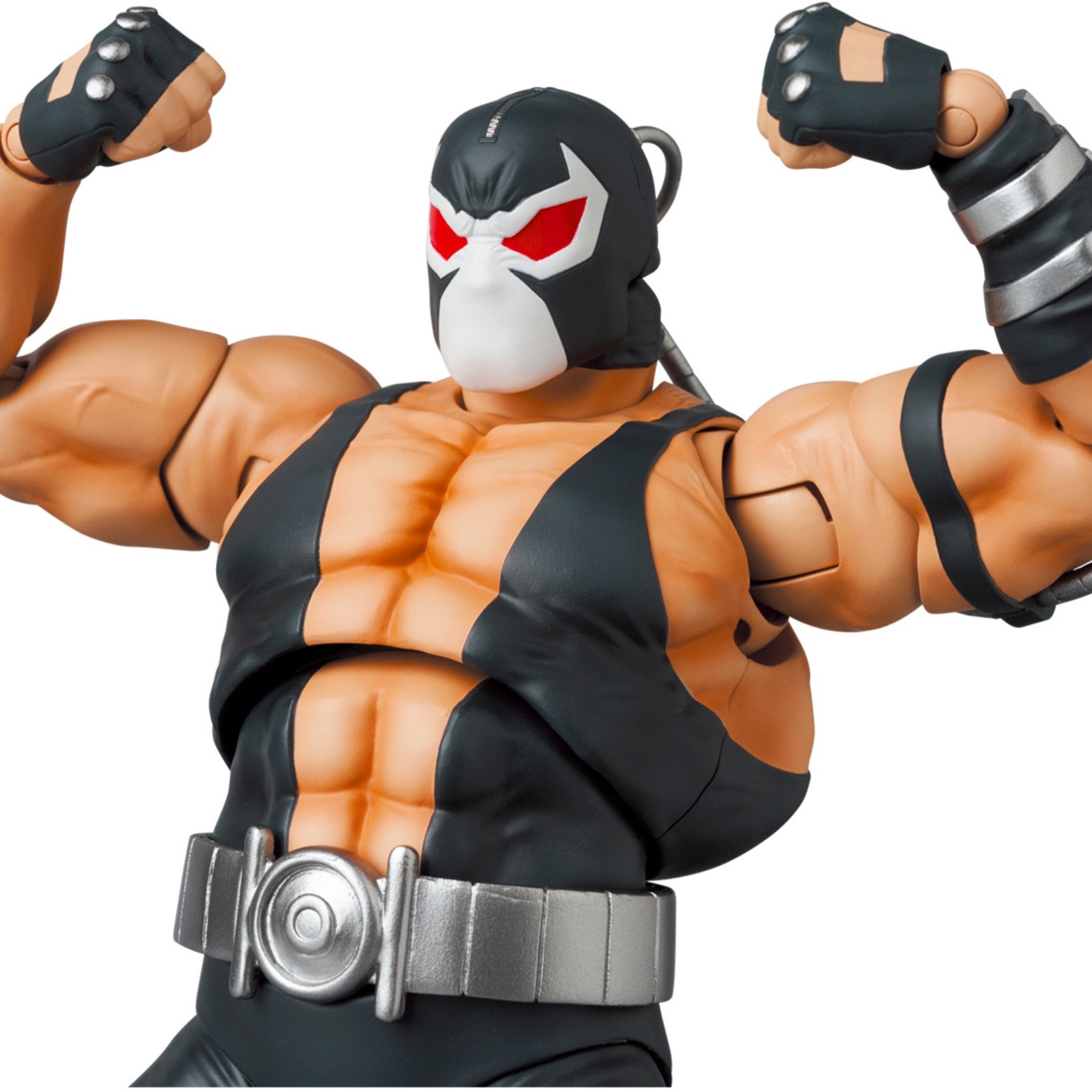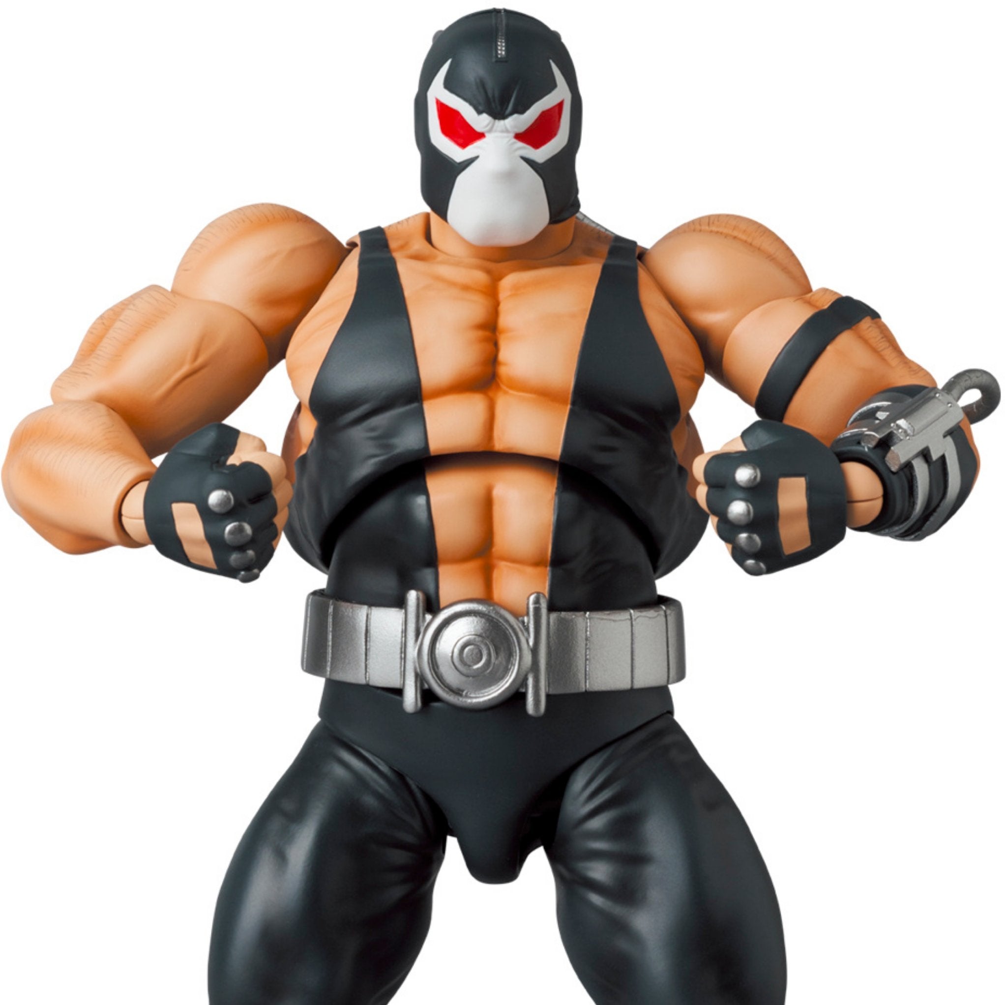 Based on the Batman: Knightfall storyline from DC Comics, this MAFEX Bane action figure is highly articulated with several features and accessories. Bane features a detailed sculpt and 2 head portraits.