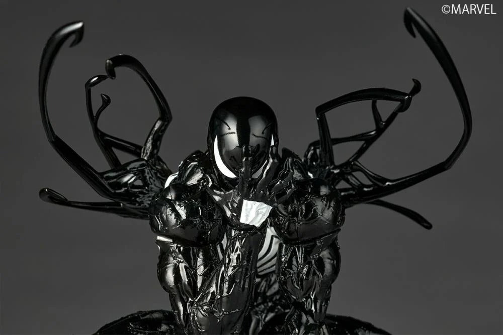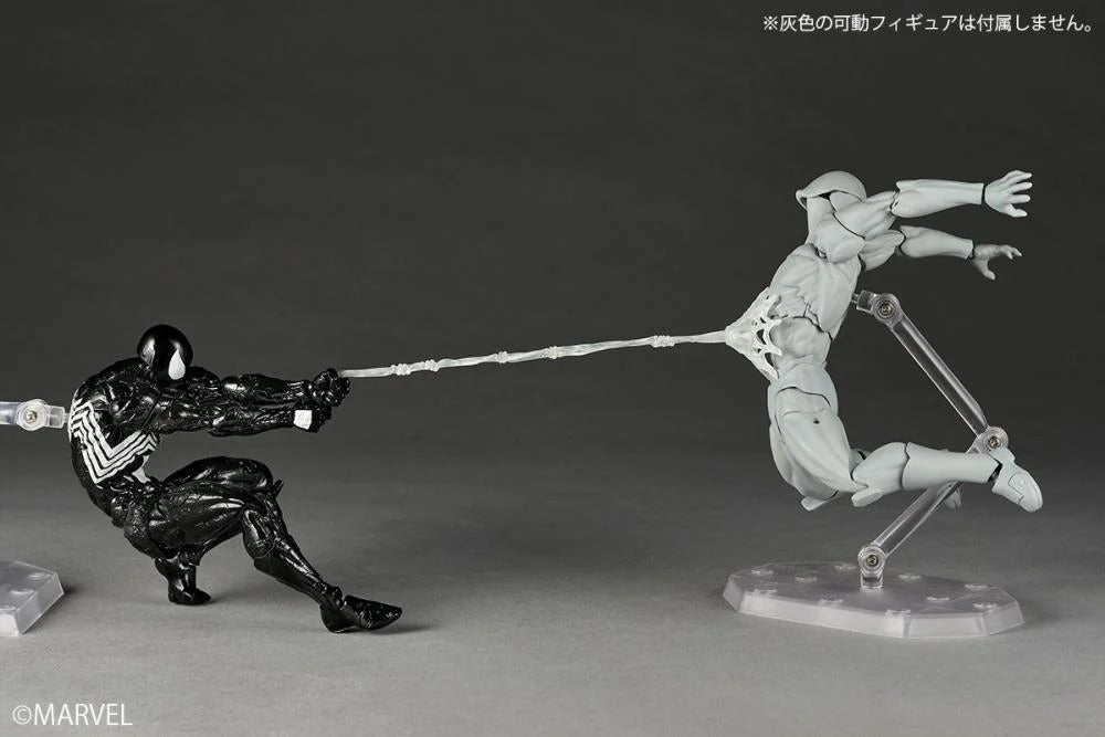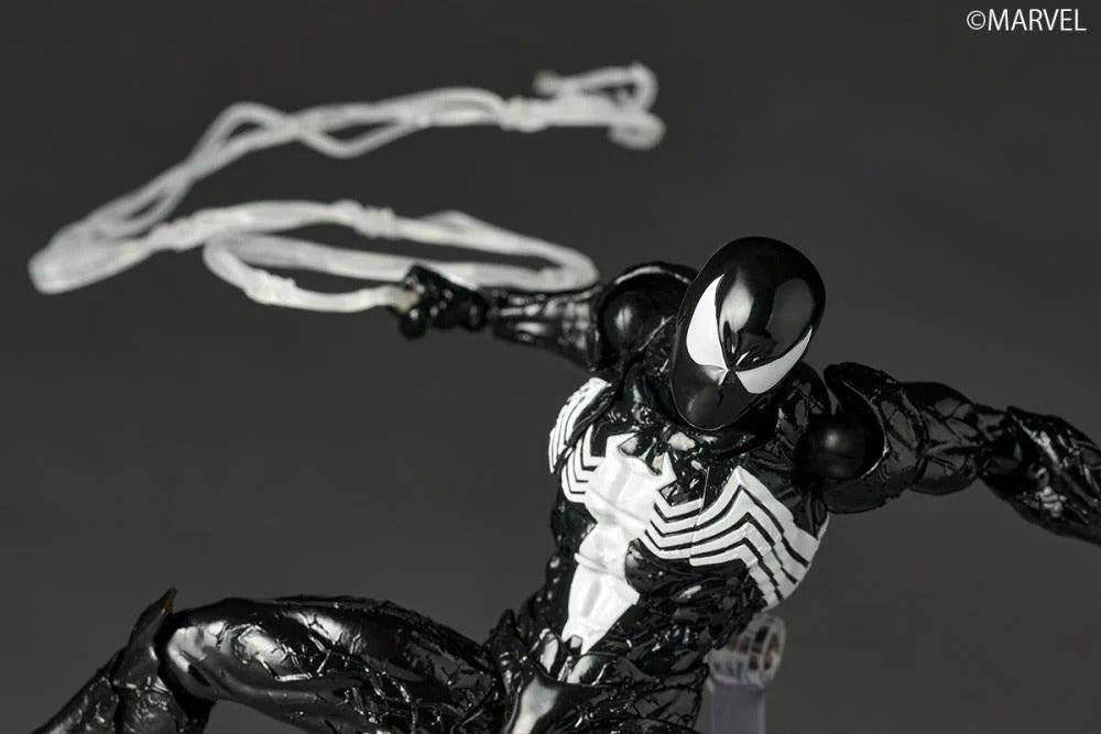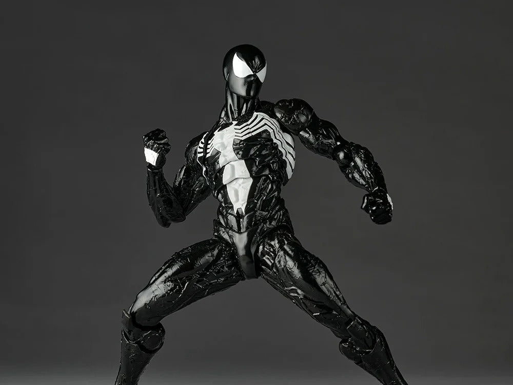Infected by an alien symbiote, Peter Parker dons his new all black suit to become Symbiote Suit Spider-Man! Gifting the mild-mannered crime fighter with tremendous strength along with a dark and growing rage, this iconic Marvel character is brought to life in Kaiyodo's fan favorite Amazing Yamaguchi Revoltech line! Perfectly designed to embrace Spider-Man's fluid motions, the dynamic articulation and accessories found with this action figure will allow you to re-enact your favorite scenes from the comics or envision your own! Will Peter give into the alluring power of the symbiote? Grow your collection of figures and tell your own web-slinging story today!