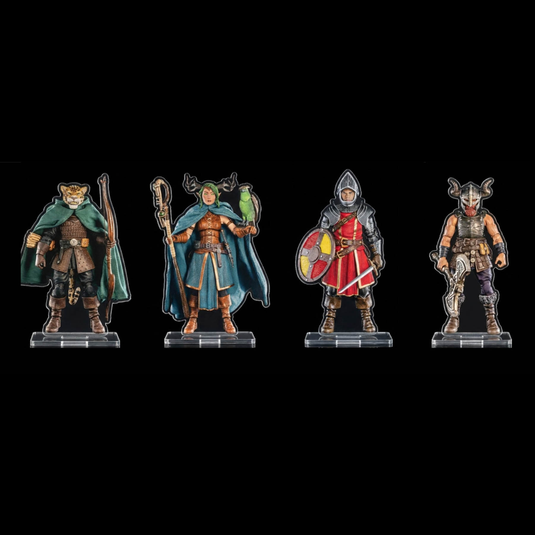 This set features four double-sided arcylic standees that measure between 28-32mm tall with 25.44mm round bases.