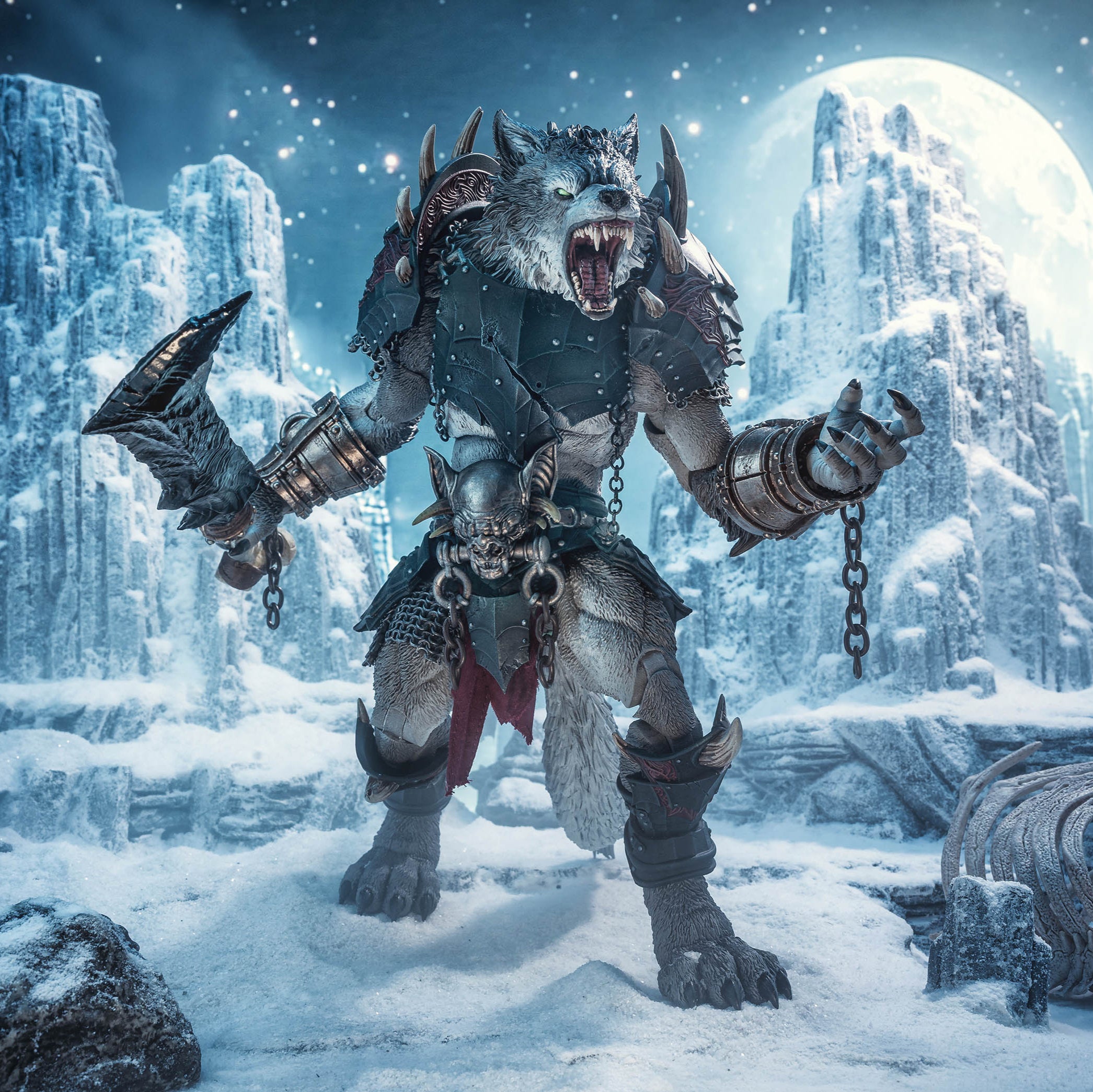 The ancient sagas of the Northlands tell of a monstrous creature known as a Fenrirkynn. Towering beasts said to be the offspring of the Great Wolf, there has not been a confirmed sighting of one of these creatures in Mythoss in ages, and their existence was deemed the stuff of fiction long ago. As the survivors of the attacks on Einsamall look upon the wolf-like monster before them, they know that the Fernirkynn are all too real, and that they are in grave danger.