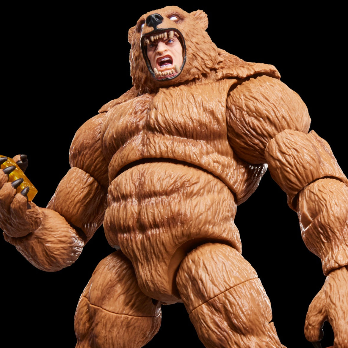 - The Marvel’s Grizzly action figure is fully articulated with premium design and poseable head, arms, and legs.