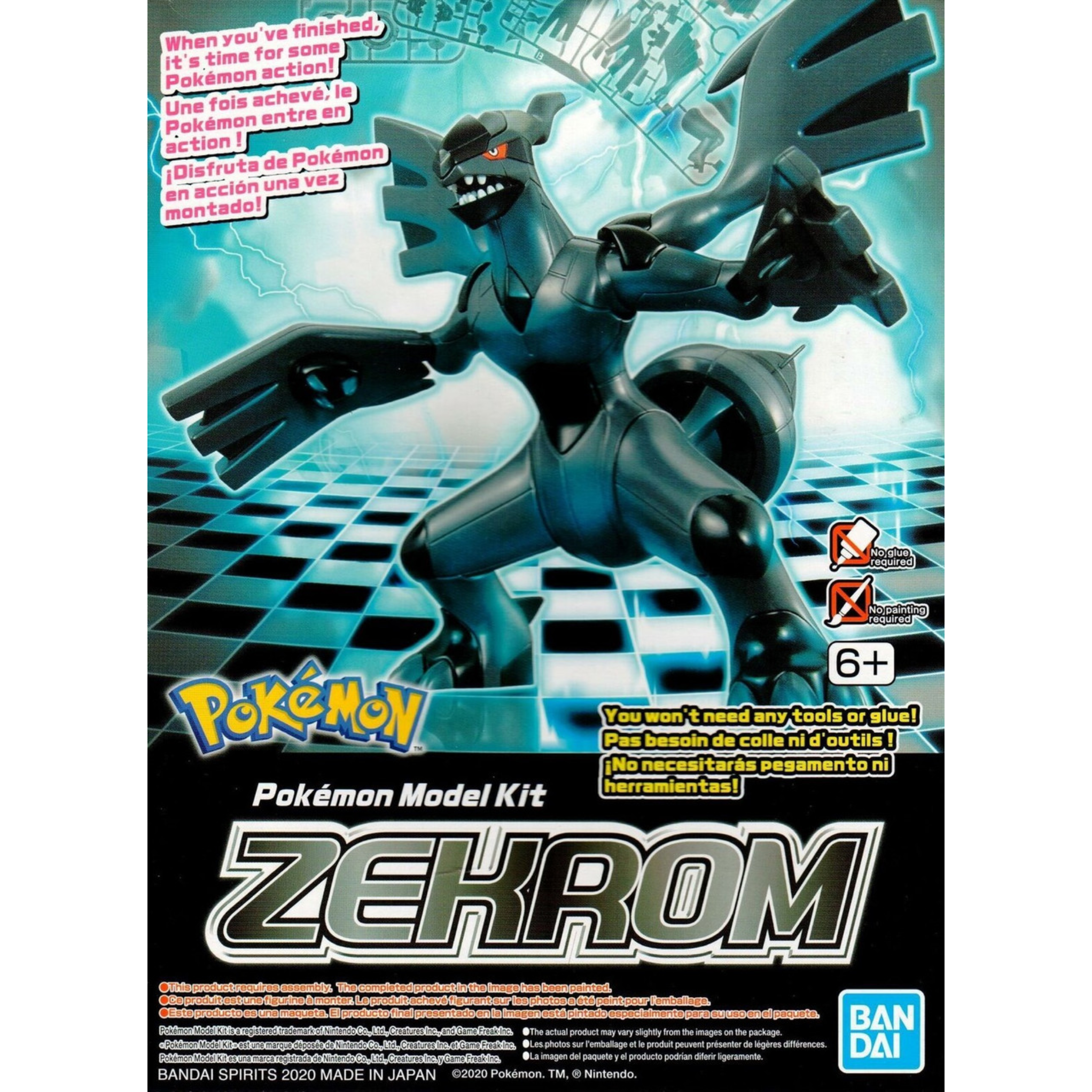 This is a snap-fit plastic model kit of the legendary Dragon/Electric-type Pokémon, Zekrom, from the Pokémon Black & White games. It's designed for easy assembly without needing glue or paint, making it suitable for fans of all ages and modeling skill levels. Once built, the model is approximately 4.75 inches (12 cm) tall.