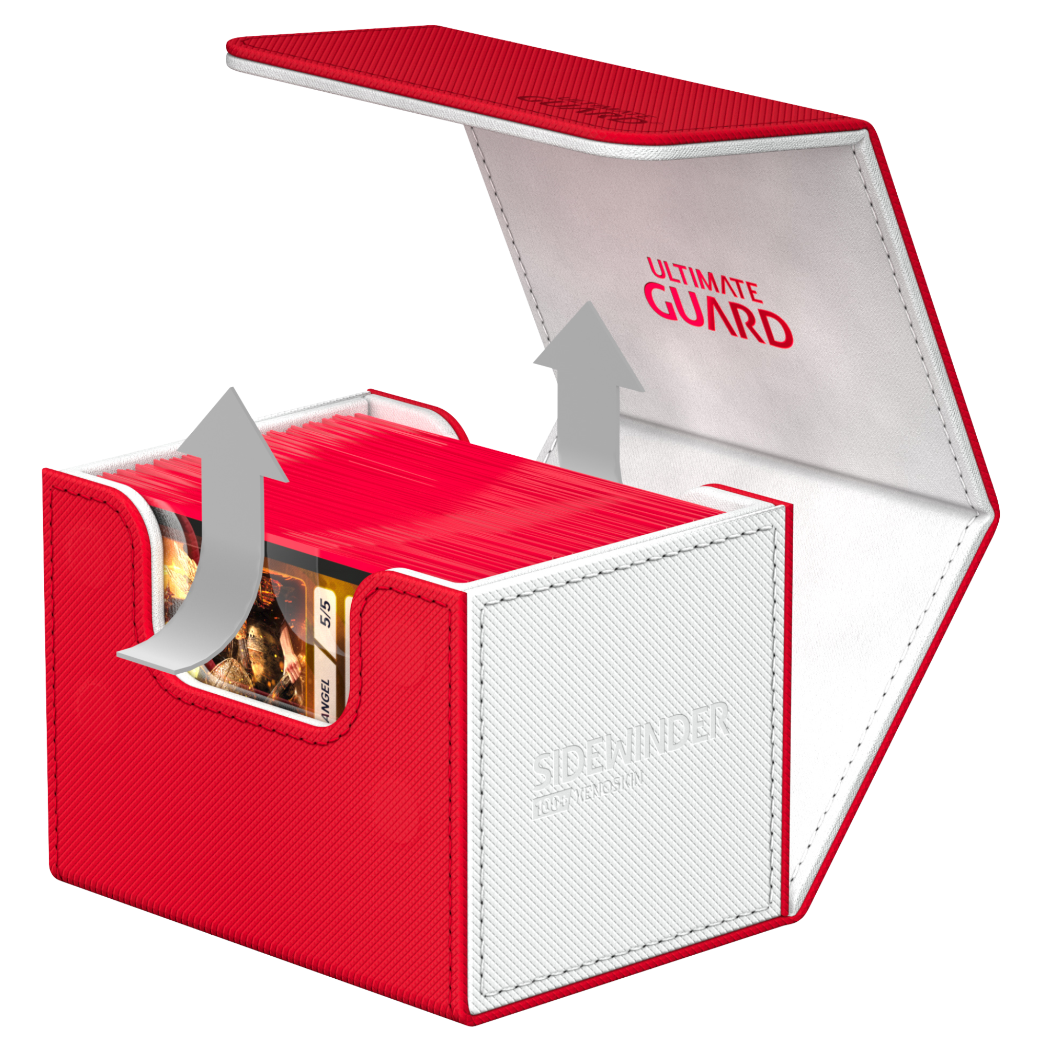 The Sidewinder Synergy line is a two-tone colored Sidewinder 100+ which will feature some of players favorite color combos to play with. Made from resistant Xenoskin material, the Sidewinder 100+ Synergy is sesigned for 100 double-sleeved or 120 single-sleeved standard sized cards. This product was also modularly designed to fit into a variety of Ultimate Guard products, such as: the Superhive 550+ and the Omnihive 1000+