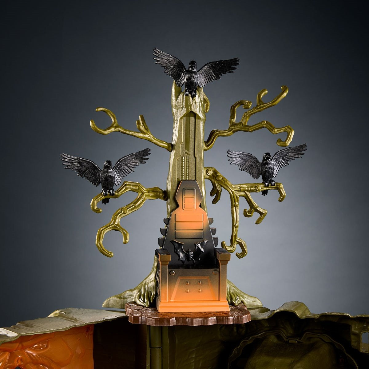 This Masters of the Universe Origins playset of Hordak's home base, the Fright Zone, is a trap-filled stronghold of terror with multiple features, modular elements and its own Dreadful Dragon creature! See the iconic Fright Zone tree with attachable birds and figure-trapping branches; it rotates to reveal Hordak's throne.