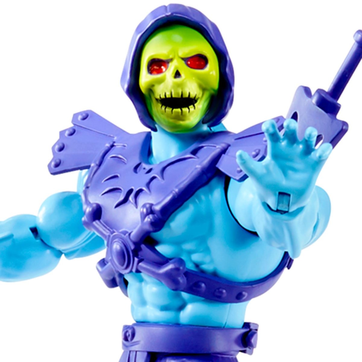 This Origins Skeletor action figure is inspired by the Masters of the Universe vintage toy from the 80s. This figure has retro style but modern posability. At Origins' 5 1/2-inch scale, the Lord of Destruction has 16 points of articulation, swappable body parts and removable harness. He comes with his signature rams-head Havoc Staff and a sword. Ages 6 and up!