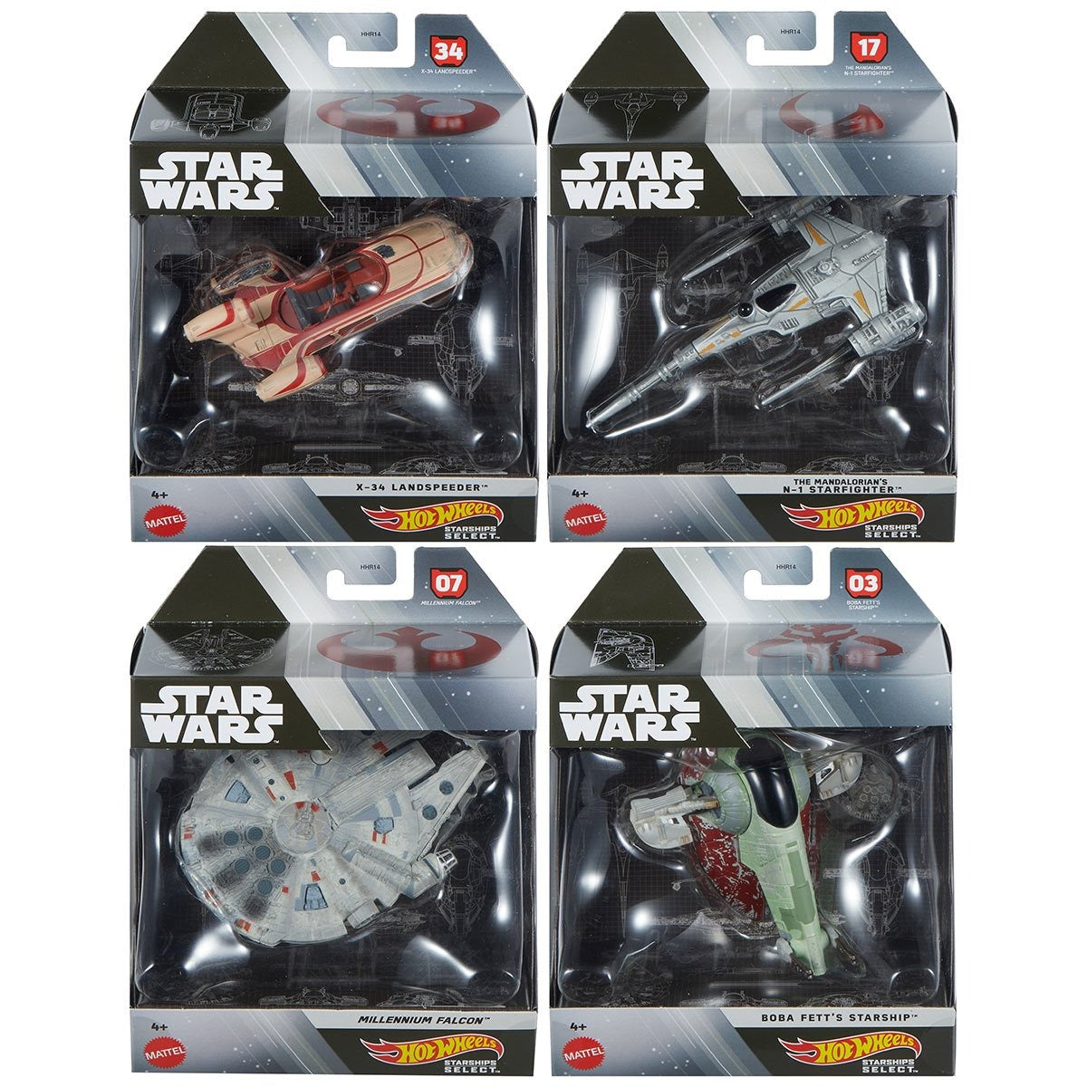 Star Wars Hot Wheels Starships Select Set of 4