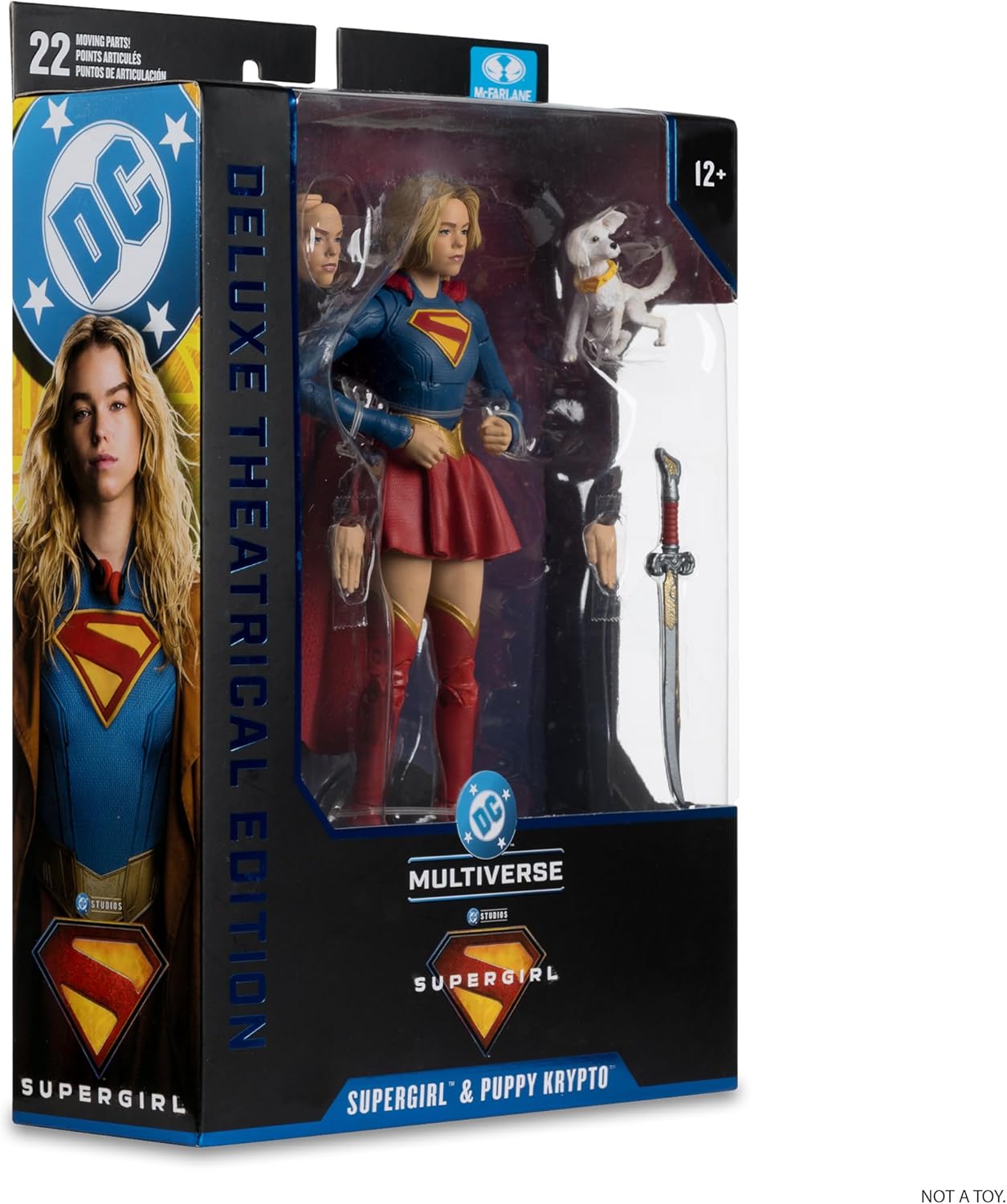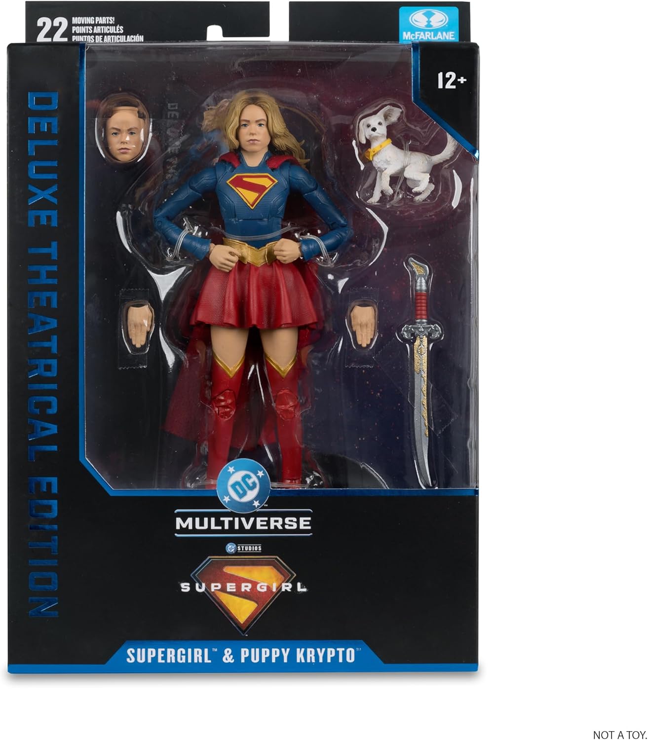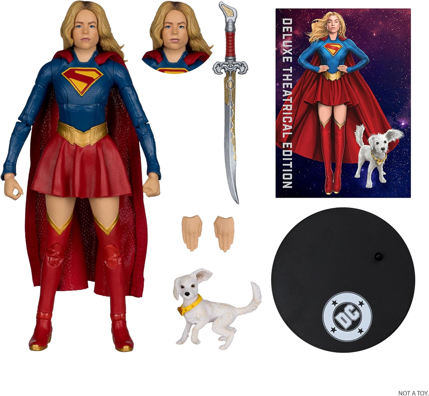 - Supergirl includes Baby Krypto, sword, alternate face plate, 2 extra hands and display base