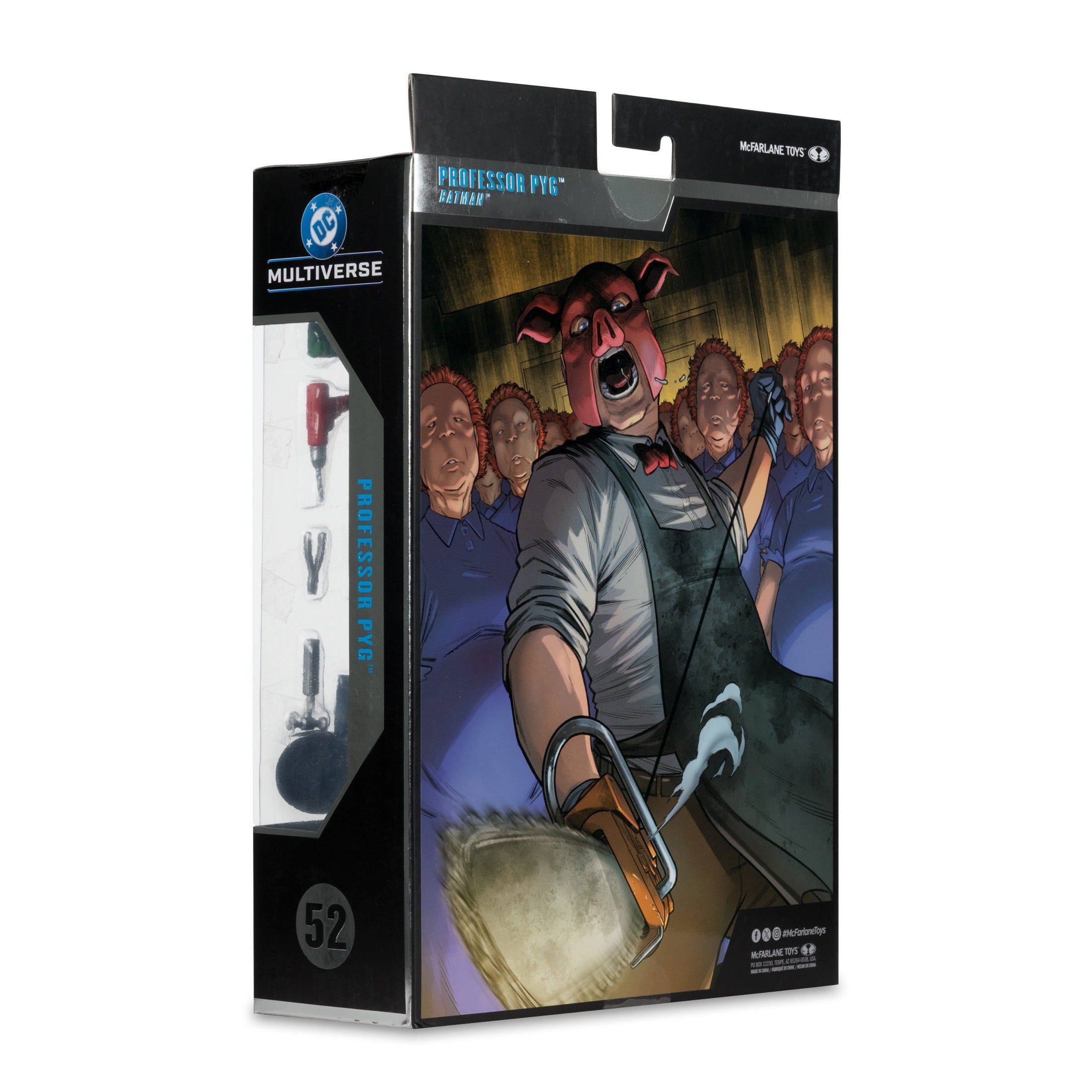 Driven insane by exposure to Doctor Dedalus Spyral labyrinth, Lazlo Valentin became pig-mask-wearing Professor Pyg. Pyg's exploits consisted of kidnapping unfortunate Gotham City citizens and performing bizarre surgeries on them before adding doll-face masks that turned them into obedient minions called Dollotrons. A driven free spirit, Pyg frequently opens new "clinics." His latest foes have included the Teen Titans, Red Hood and the Outlaw, Nightwing, and Batman.