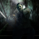 The Hewitt family’s tormented serial killer is dressed in his signature butcher’s attire—filthy apron, stained shirt, and work boots—each detail recreated with exquisitely eerie realism.