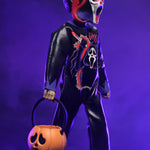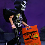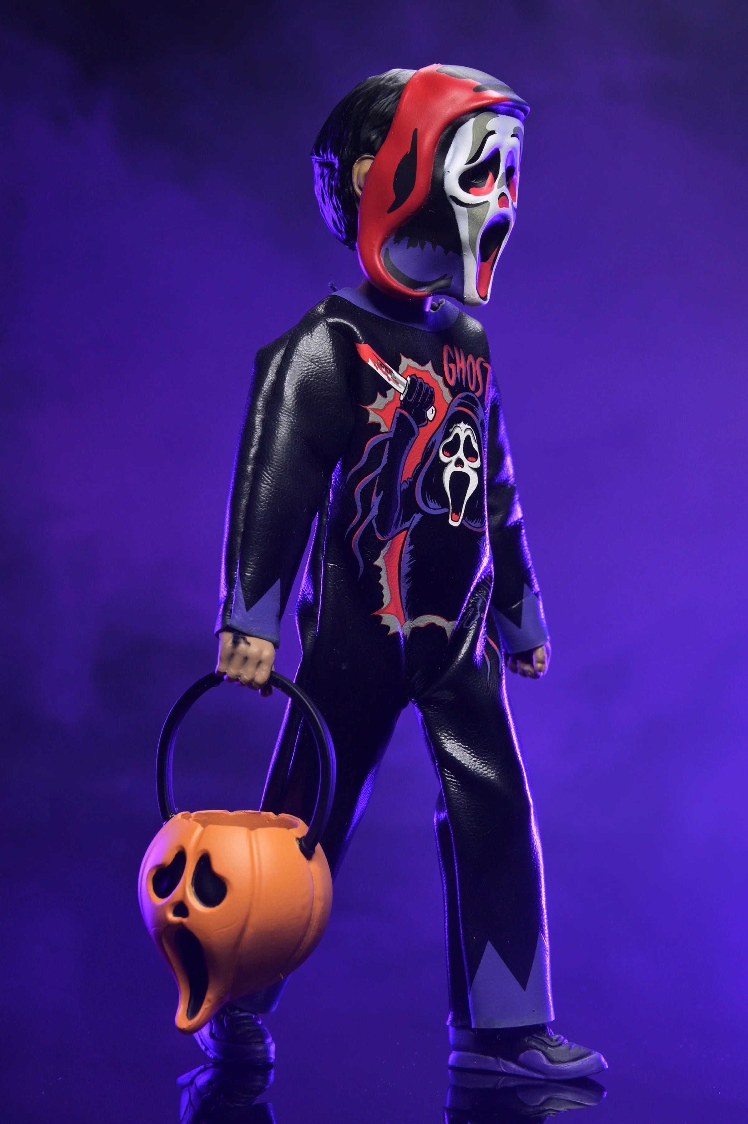 ach 6-inch action figure wears a mask and soft goods clothing replicating the signature vinyl look of the classic costumes and includes a trick-or-treat bucket or bag accessory. Each figure is sold separately and packaged in a numbered, retro-style window box that pays homage to the classic costume packaging.