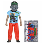 The Ben Cooper Costume Kids Collection is back, and this time it's a totally tubular tribute to the 1987 Teenage Mutant Ninja Turtles cartoon! NECA brings the golden age of trick-or-treating to life with fully poseable figures based on the licensed kids' costumes from two of the largest Halloween costume manufacturers from the 1950s–‘80s. Featuring faithful recreations of the original Collegeville costumes, this wave includes all four heroes in a half shell— Leonardo, Donatello, Raphael, and Michelangelo—plus classic villains Shredder, Bebop, and Rocksteady. Each 6-inch costumed action figure wears a mask and soft goods clothing replicating the signature vinyl look of the classic costumes and includes a soft goods trick-or-treat pillowcase accessory.