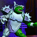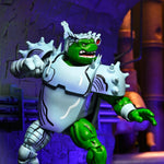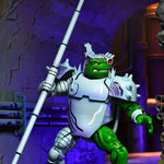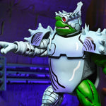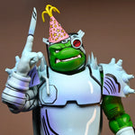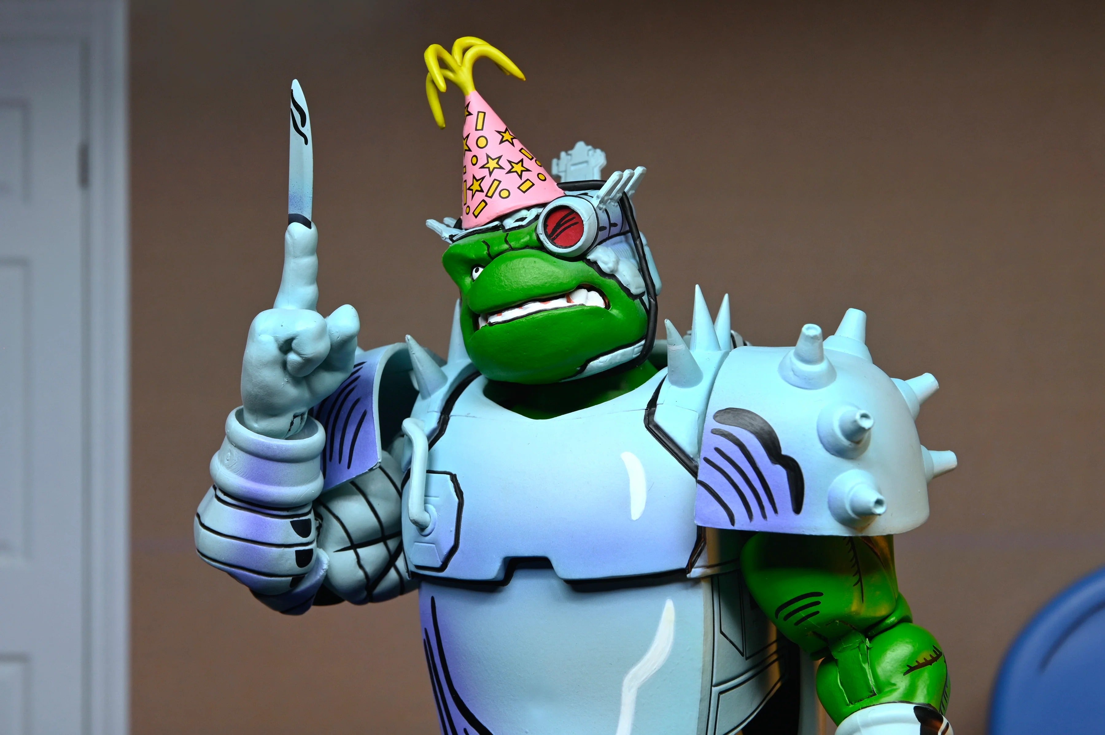 • Featuring an all-new sculpt, this 7-inch scale Cyborg Donatello action figure by NECA includes interchangeable heads, party hat, robo-knife hand, and robo-bo staff.