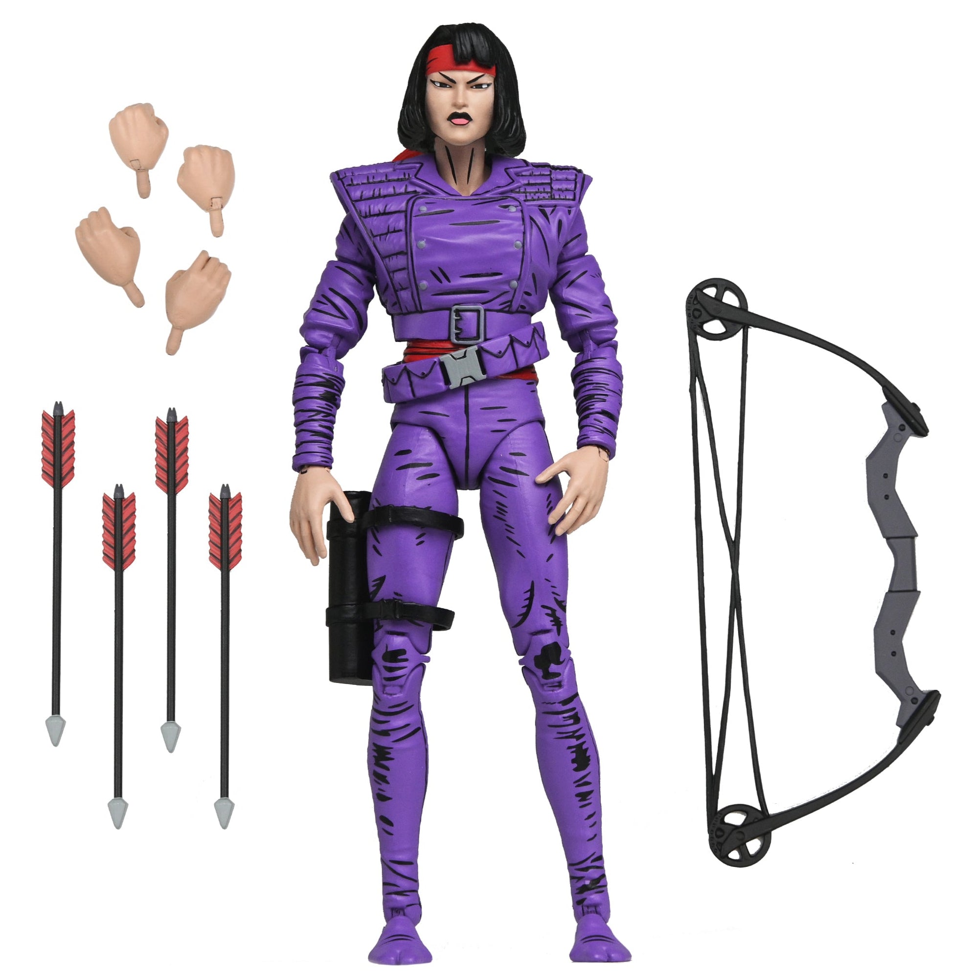 Featuring an authentic, stylized comic book deco, this Karai Mercenary action figure is ready to join your TMNT collection. The 7-inch scale NECA figure includes interchangeable hands, bow and arrow, and quiver. Comes in collector-friendly window box packaging with artwork by Kevin Eastman.