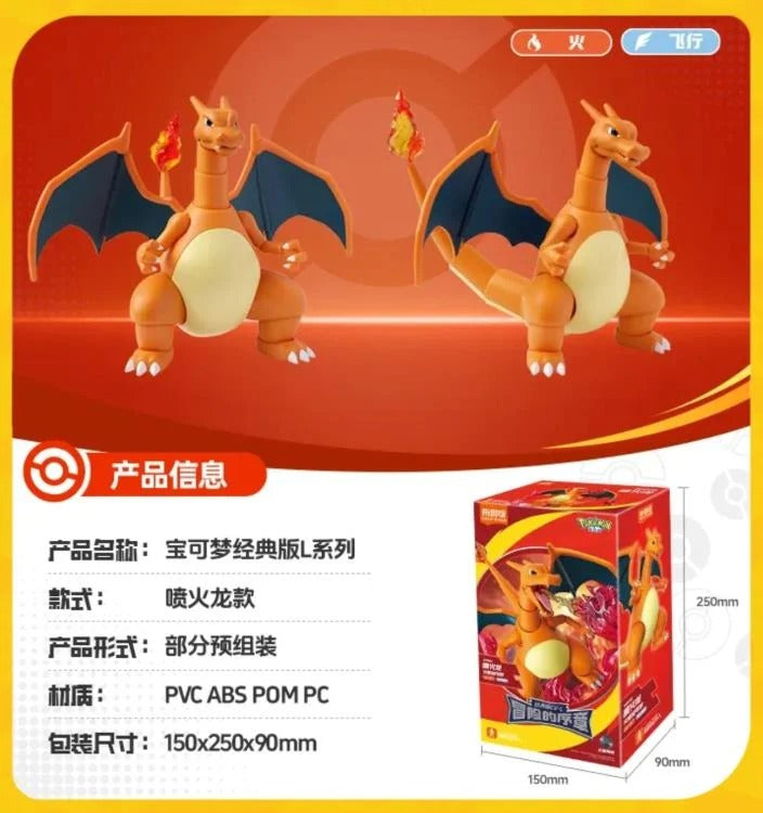 From the popular Pokemon franchise comes the Classic Version-L Charizard model kit by Blokees! This model kit is highly articulated once fully assembled, while also including additional parts and accessories for customizing the model. This model kit does not require glue, paint, or cutters, making for an easy and enjoyable build. Be sure to add it to your collection!