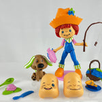 Our Classic Huckleberry Pie is ready to be posed into all your favorite scenes! Huckleberry Pie comes with removable hat and handkerchief, best friend Pupcake, fish and fishing pole, basket of huckleberries, huckleberry pie, ice cream and spoon. Figure also includes interchangeable faces with alternate expressions, additional hands for different accessories, and a stand for posing.