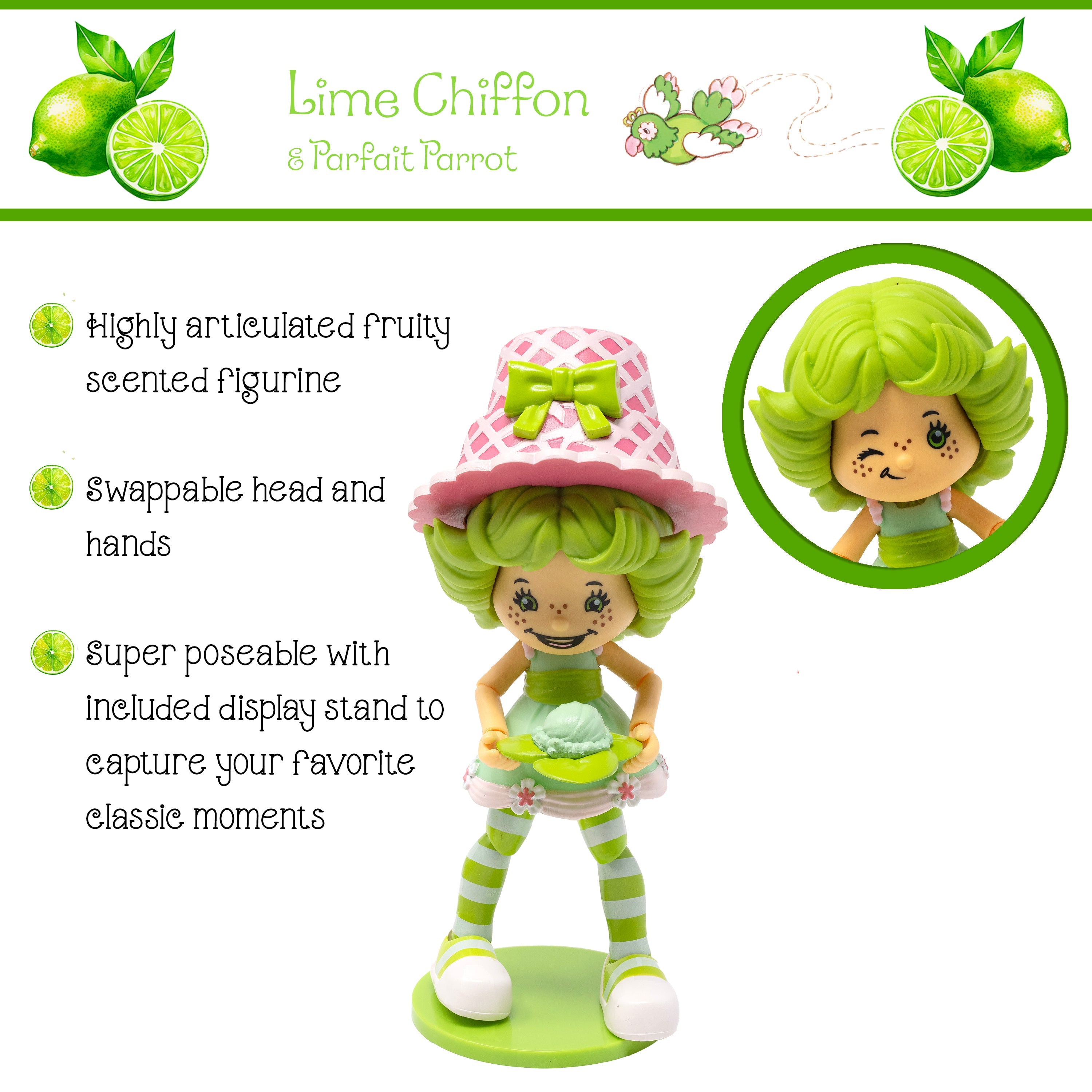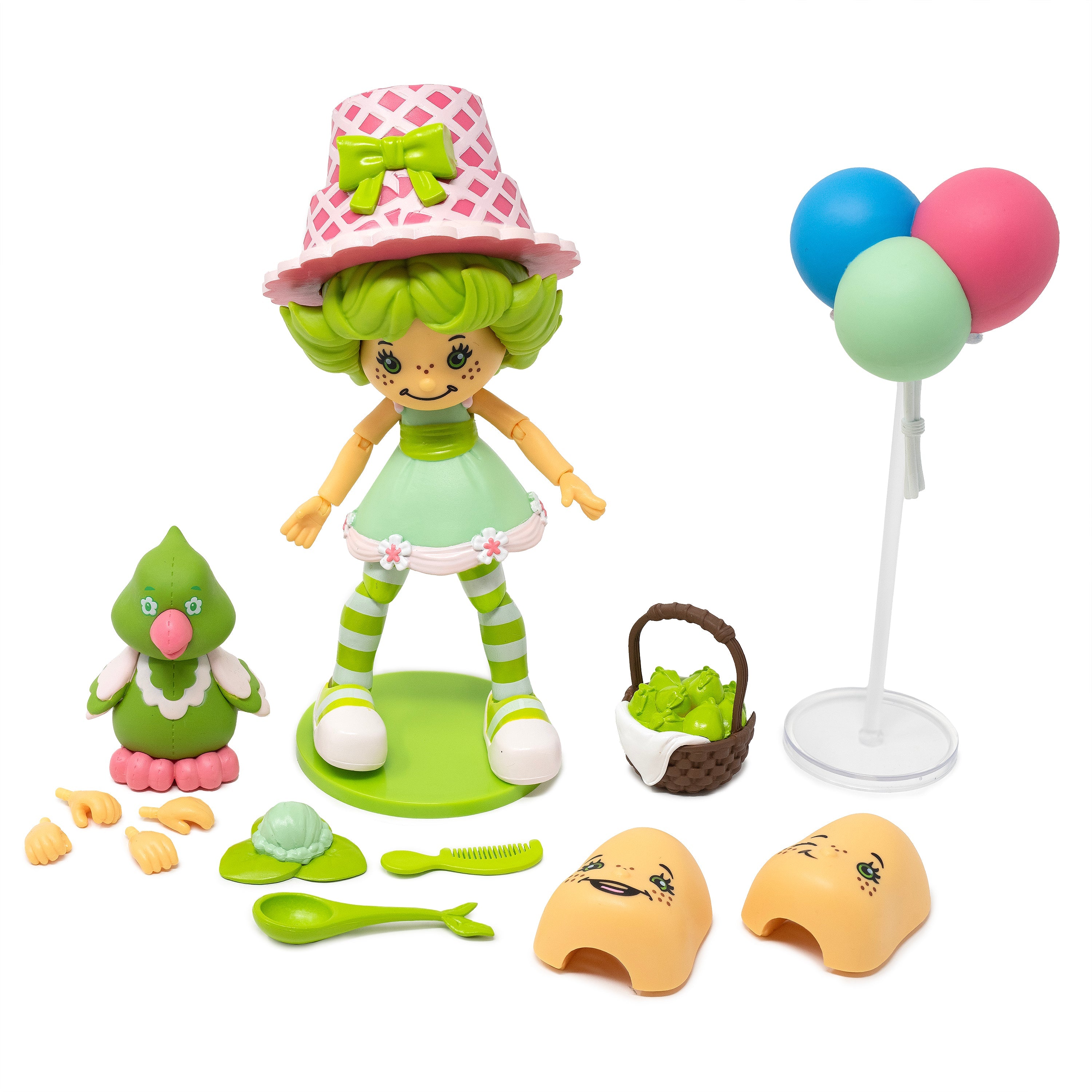 Our Classic Lime Chiffon is ready to be posed into all your favorite scenes! Lime Chiffon comes with removable hat and removable dress, best friend Parfait, bunch of balloons, basket of limes, bowl of ice cream and spoon. Figure also includes interchangeable faces with alternate expressions, additional hands for different accessories, and a stand for posing.