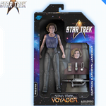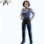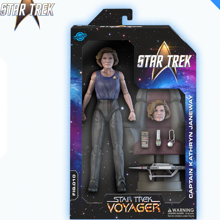 Experience the U.S.S. Voyager’s clash with the dangerous Krenim Imperium with this Captain Janeway action figure, from the crew’s harrowing “Year of Hell.” Shedding her uniform jacket after being badly burned aboard ship, this 1/10-scale, articulated Janeway figure features the battle-worn captain in her tank top, a more comfortable outfit for life aboard the near-derelict starship. Also included is a silver pocketwatch, anchored at her hip as a memory of Commander Chakotay, a pair of phasers and a tricorder, and the captain’s chair from Voyager’s bridge.