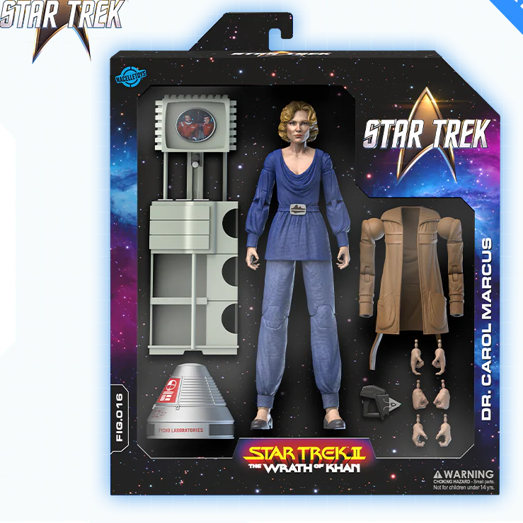 The brilliant scientist behind the Genesis Project — and former lover of Admiral James T. Kirk — is the newest Star Trek action figure from Nacelle! This 1/10-scale action figure from Dr. Carol Marcus from Star Trek II: The Wrath of Khan arrives directly from the Mutara sector complete with a communication terminal and cargo container from science station Regula I. Plus, the articulated figure has removable arms, allowing her to be posed wearing her brown field jacket for a visit to the Genesis Cave.