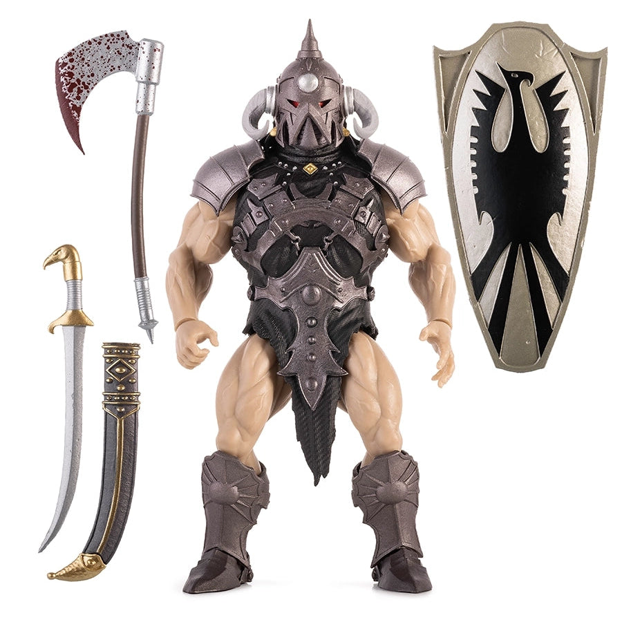 Frank Frazetta’s iconic Death Dealer comes to life as a 5.5” Retro Action Figure in the Frazetta Universe from ICON Collectibles. Crafted from premium plastic, this articulated figure features classic retro styling inspired by vintage action figures, while staying true to the power and presence of Frazetta’s original artwork. Death Dealer includes signature weapons, removable armor, a removable illustrated cardback designed to slide out of the packaging for display, along with a separate collectible trading card.