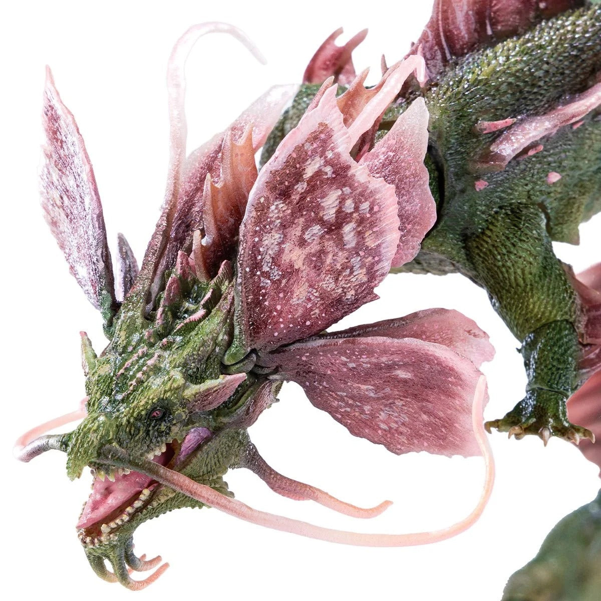 Rising from the hidden depths, Hiya Toys presents the Godzilla x Kong: The New Empire Tiamat Exquisite Basic Series None Scale Action Figure! This Exquisite Basic Series Tiamat figure is based on the original film CG data, faithfully capturing the Titan's appearance. Measuring approximately 16-inches in full length from head to tail, this figure features multi-layer paint applications over clear body, featuring Tiamat's signature green fin-scaled hide, pink layered dorsal fins, and petal-shaped cranial fins. Overlapping spines running from head to tail, enhancing her imposing and intimidating silhouette as an ocean titan. For articulation, Tiamat's main body utilizes a continuous segmented structure to replicate her agile actions. The rear section of the tail features built in wires, allowing smoother and more natural bending. The petal-shaped cranial fins around the head can also be adjusted, enabling a wide range of signature actions, with 2x additional stand, bringing deep-sea titan aesthetic seen in the film.