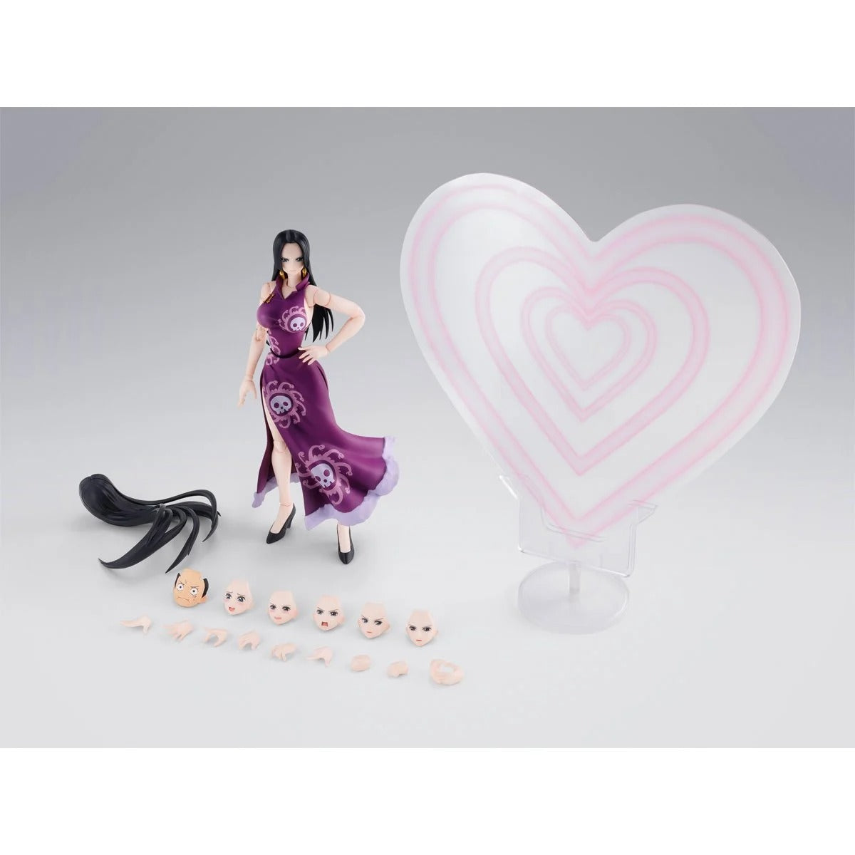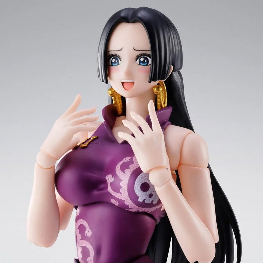 "The S.H.Figuarts action figure series welcomes “BOA HANCOCK -MARINEFORD-”! From the TV anime ONE PIECE, Boa Hancock as she appeared during the Marineford Arc joins the line! In addition to an exceptional range of motion that can recreate Hancock’s diverse actions, the set includes variety of expression parts and optional pieces to reproduce her “Love-Love Mellow”
