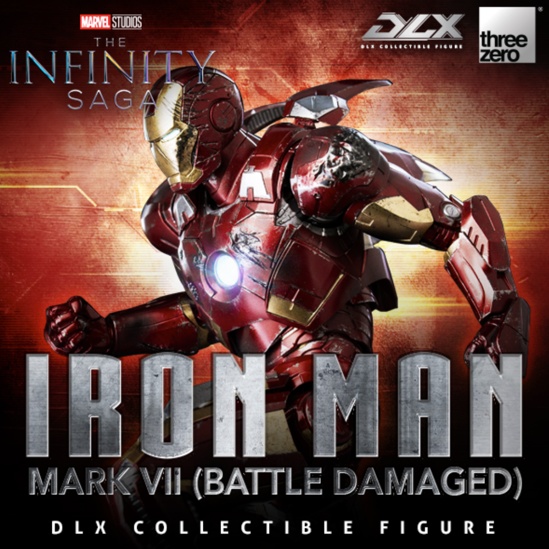 Threezero presents the Marvel Studios: The Infinity Saga Iron Man Mark 7 Battle Damaged DLX Action Figure! The Iron Man Mark 7 DLX figure is a fully-articulated collectible figure that stands approximately 7-inches tall and is constructed of Threezero's renown DLX die-cast metal system with 48 points of articulation. Detailed structural engineering and exquisite design enable the figure to depict a variety of action poses while maintaining a realistic appearance. LED lighting functions are located on the chest and the eyes, and the four flight panels on the back can flip to open and closed. The Mark 7 suit exhibits the classic red and gold colors with multi-layer metallic coating process, accurately replicating the design of Tony Stark's heavily-armored suit as seen in Marvel Studios' The Avengers. The battle-damaged version features meticulously-sculpted bullet holes and scratch marks on the mask, helmet, chest, shoulder armor, and body; all enhanced by realistic battle damage details, creating an uneven war-torn texture.