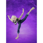 From the TV animation Dandadan, Okarun (Transformed) appeared as Ver. 2 in a new guise on S.H.Figuarts! With an overwhelming range of motion that can match the intense battle action scenes that unfold in the show, dynamic posing is possible! He comes with interchangeable hands (4x left, 5x right), 4x interchangeable expression parts, 2x masks, and updo bangs parts. This Dandadan Okarun Transformed Version 2 S.H.Figuarts Action Figure measures approximately 6-inches tall. Add it to your collection!
