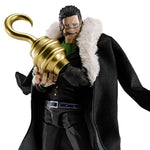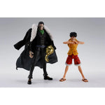 The action figure series S.H.Figuarts is now joined by Sir Crocodile! From the TV anime One Piece comes this figure of Sir Crocodile from the Battle of Marineford! In addition to an incredible range of motion that lets you recreate Crocodile's diverse actions, it also comes with a variety of facial expressions and optional parts that let you recreate the powers of the Suna Suna Fruit! It comes with 3x types of replacement wrist parts for the right, right wrist part with effect, 3x interchangeable expression parts, a set of interchangeable head parts with effects, crescent-shaped dune replacement arm parts, and a cloth coat. Replacement facial expression parts for S.H.Figuarts Monkey D. Luffy Marineford are also included (Luffy sold separately). This One Piece Sir Crocodile Marineford S.H.Figuarts Action Figure measures approximately 7-inches tall. Add it to your collection!