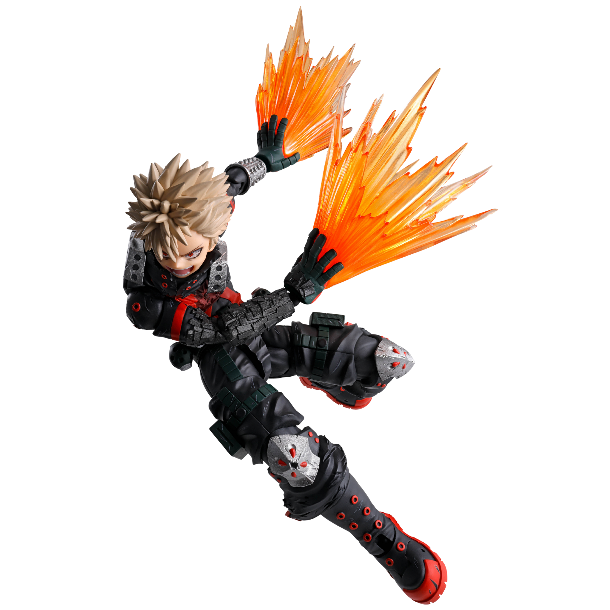 From the TV anime ""My Hero Academia,"" Katsuki Bakugo joins S.H.Figuarts in his revived form from the final battle. The figure includes a wide variety of optional parts to recreate his last battle scenes. [Set Contents] Main body, 3 left and 4 right interchangeable hand parts, 5 interchangeable expression parts, set of interchangeable hair parts, 2 sets of explosion effect parts