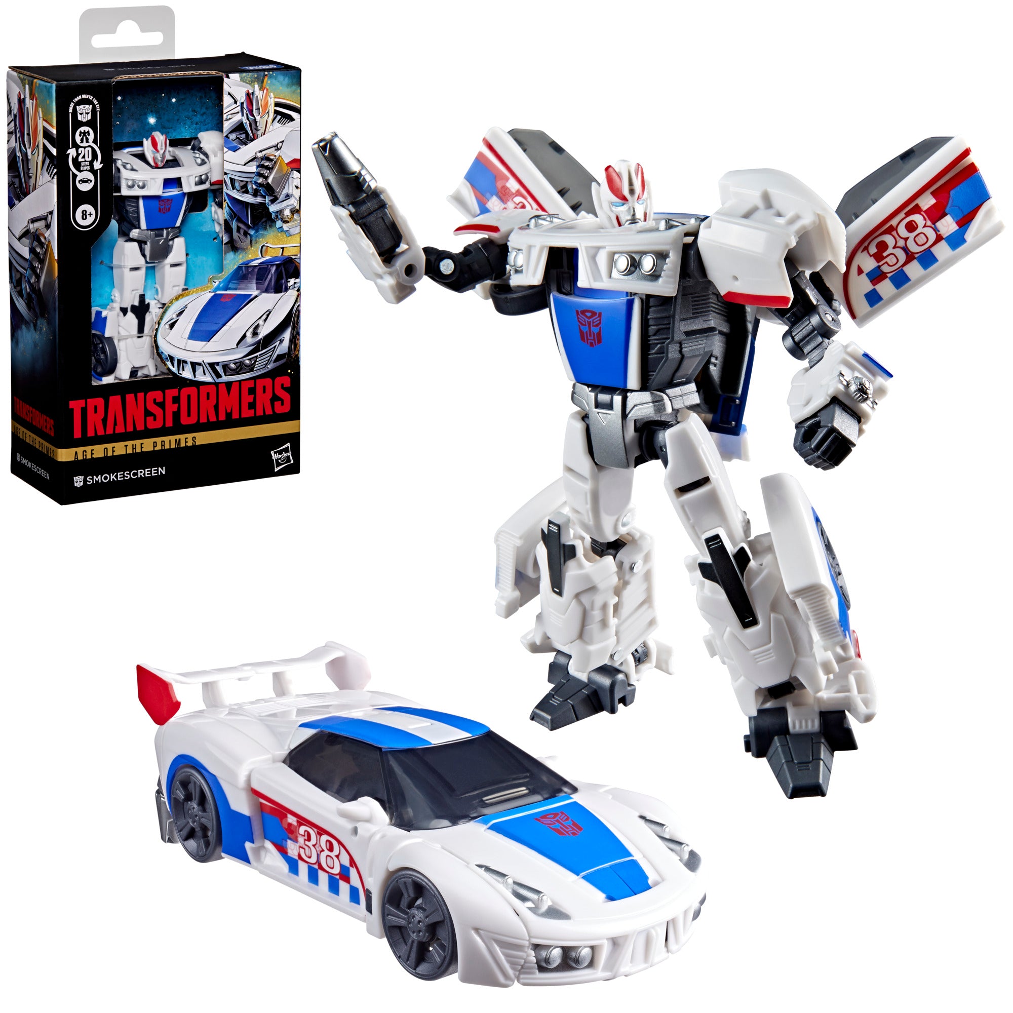- This Transformers Age of the Primes Smokescreen figure features deco and details inspired by the Transformers universe.