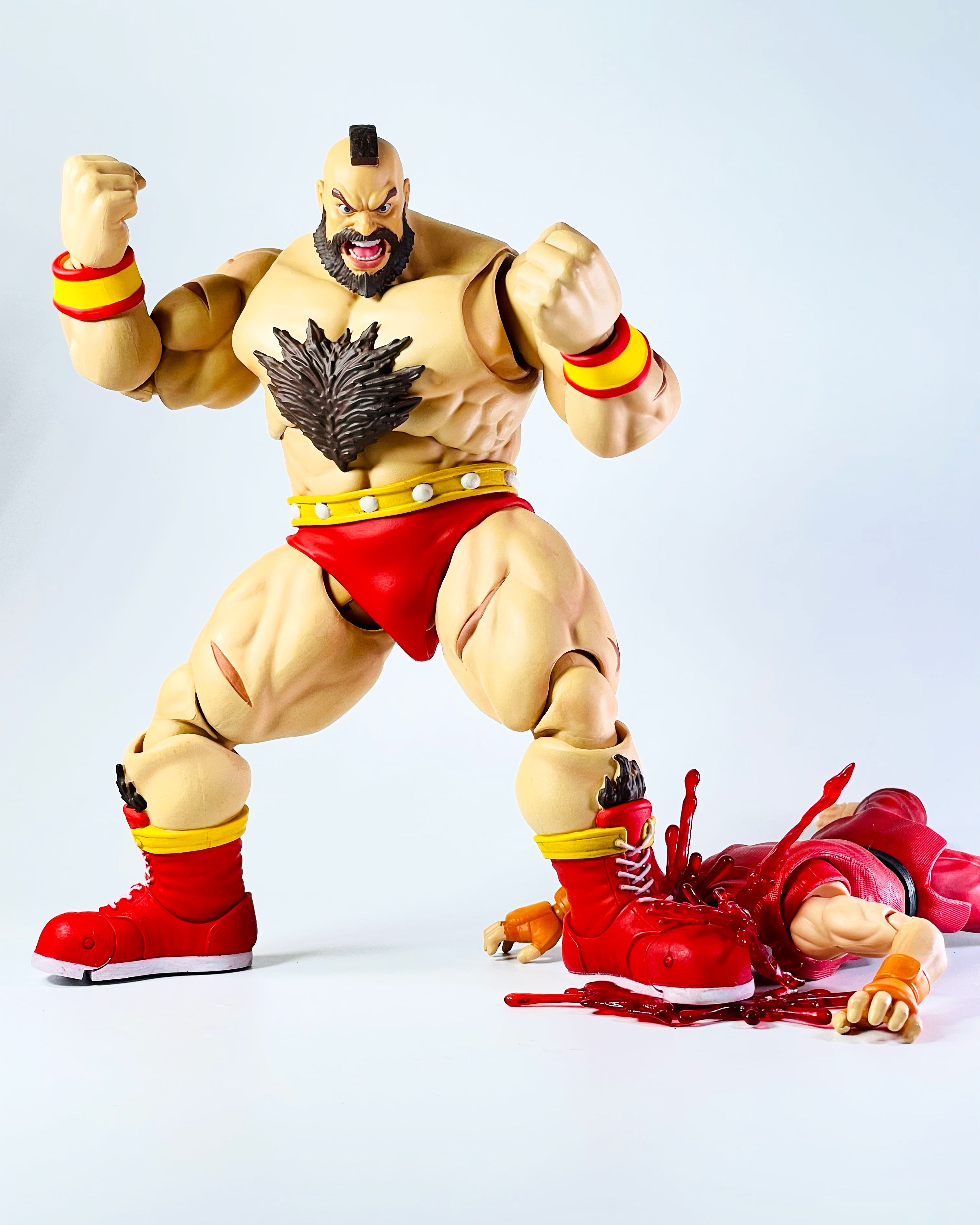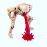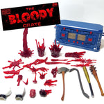 The BLOODY CRATE by Super Action Stuff is a set including over 26 accessories compatible with 1/12 scale action figures. This set includes a sci-fi styled crate with removable lid, numerous gory translucent blood effects, a pair of white colored boxing gloves, gold baseball bat, spiked bat, axe and crowbar. Bloody effects come in all shapes and sizes including a heart and brain, exit wounds, impact effects, different splashes, blood effects that can fit on spiked and bladed weapons, and a splashing red vomiting effect.