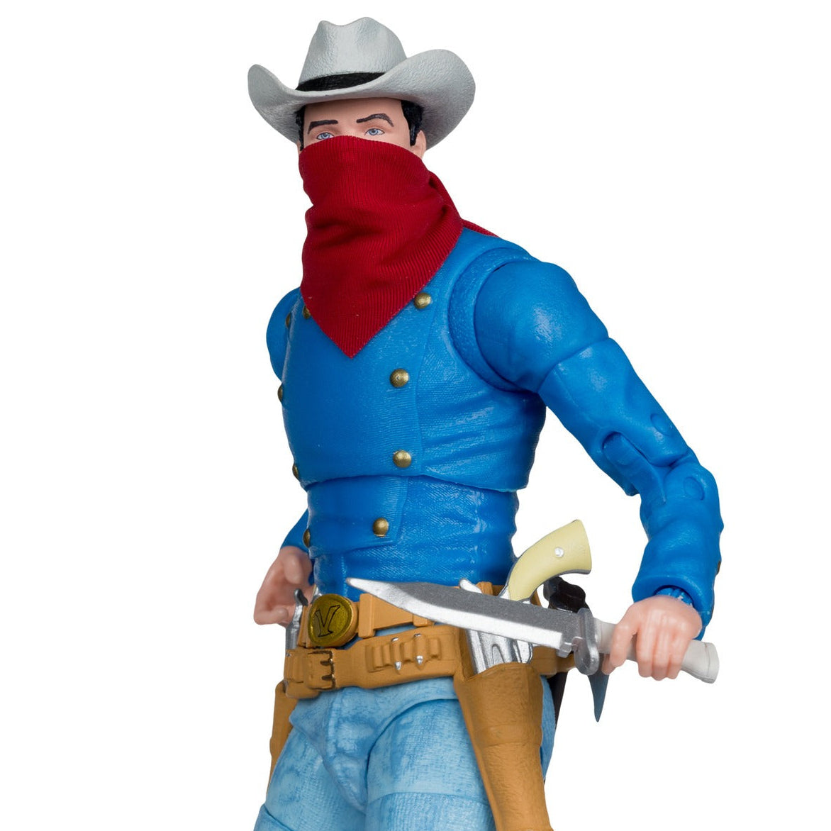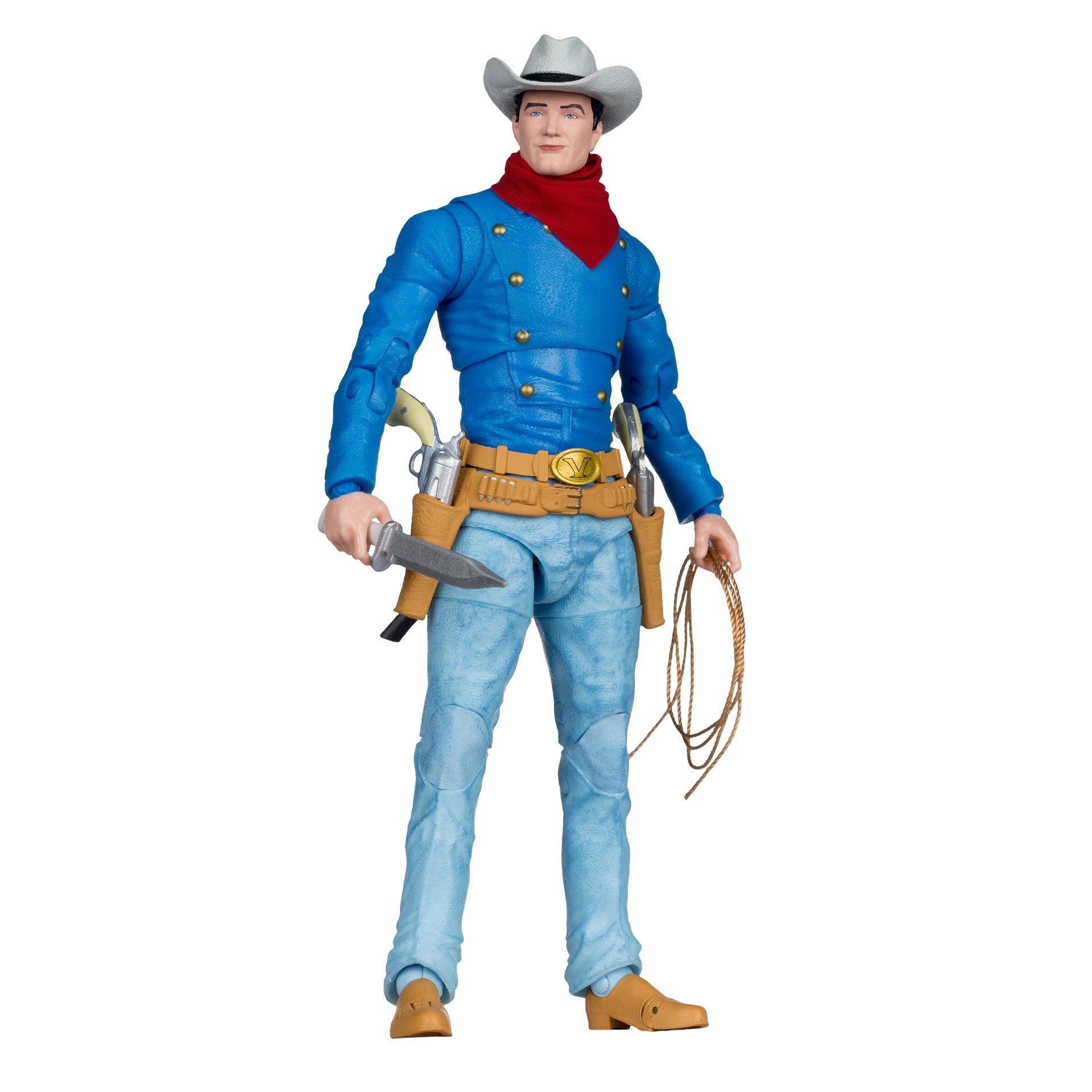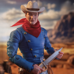 - Includes belt with holster and 2 revolvers, hatchet, knife, lasso and base.