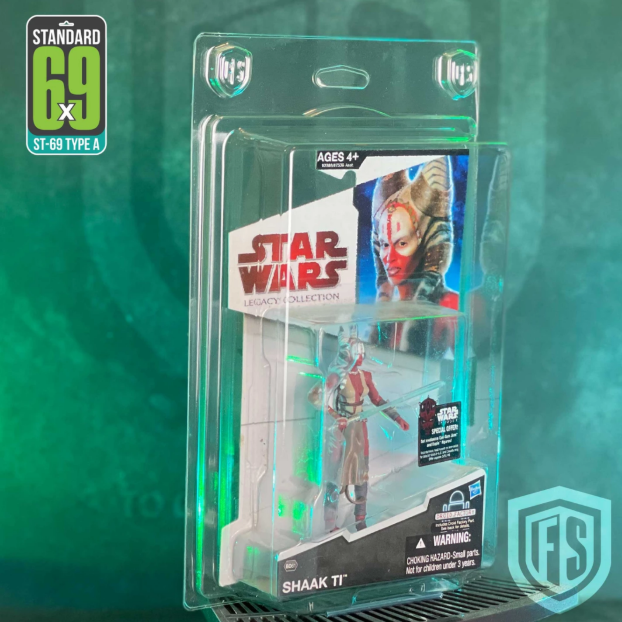 The ST-69 (Type A) is not compatible with carded figures with large bubbles that reach the edge of the card like Revenge of the Sith, Saga and Clone Wars lines. Those will fit in the ST-69 (Type B) - coming in '22.