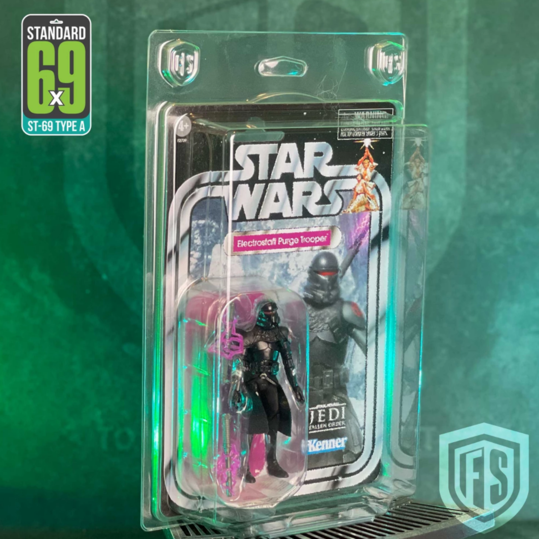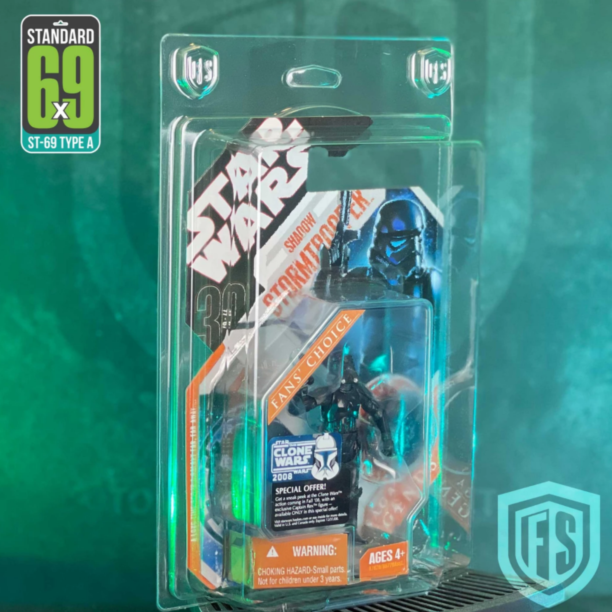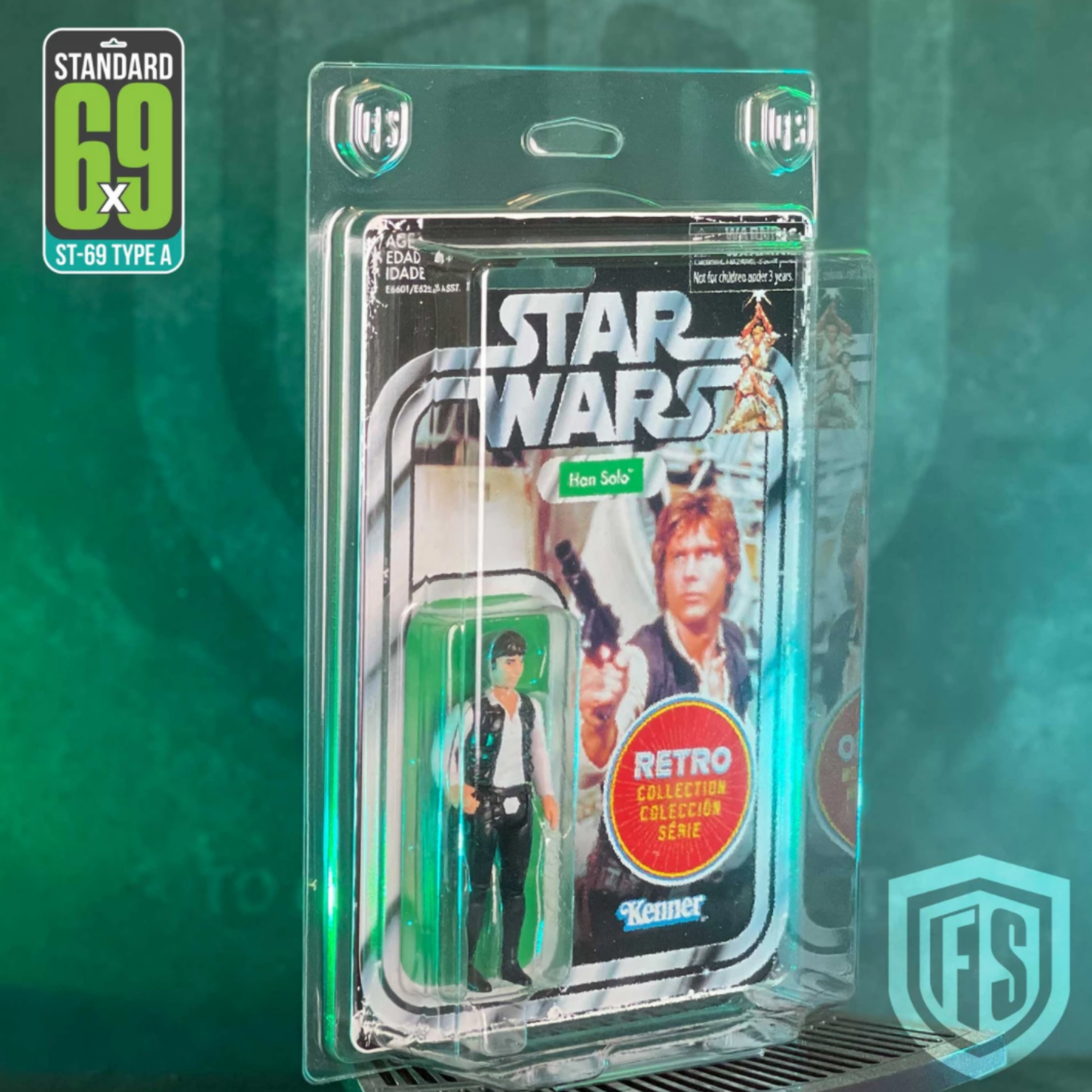The most popular clamshells are designed for modern and vintage 6x9" carded figure lines. The re-designed ST-69 is the perfect clamshell for card and blister-style figures. The ST-69 (Type A) has more lip surface to hold your figures securely and is easier to use.