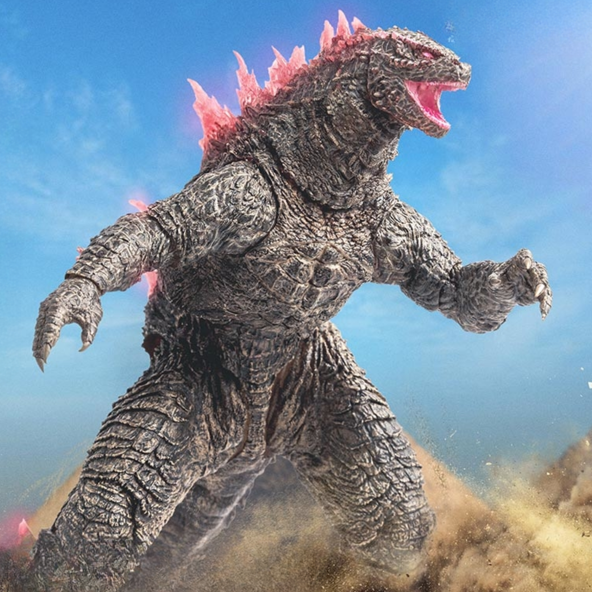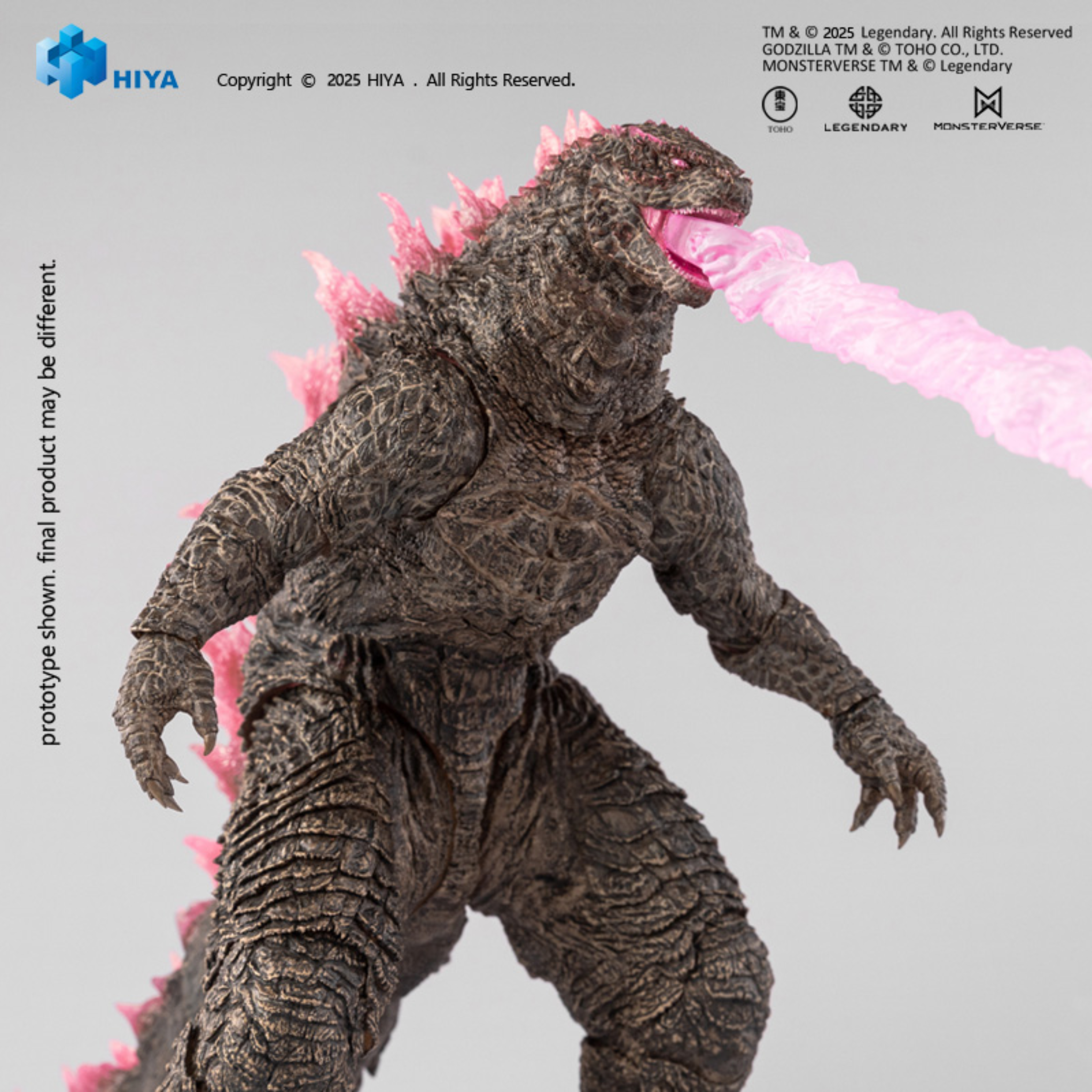 From Hiya Toys. A PREVIEWS Exclusive! The evolved version of Heat Ray Godzilla as seen in Godzilla x Kong: The New Empire joins the Hiya Toys EXQUISITE BASIC Series with stunning upgrades and screen-accurate details! This evolved version of Godzilla features improved proportions, a sleeker silhouette, a newly engineered double-jointed neck for expressive posing, enhanced dorsal fins with sharper translucent textures, and a multi-jointed tail for fluid movement. Layered paint applications over the translucent body recreate Godzilla's glowing energy effect when backlit. This PREVIEWS Exclusive figure includes 1 interchangeable head, 2 hand parts, and 1 pink Heat Ray effect to bring his climactic battle scene to life!