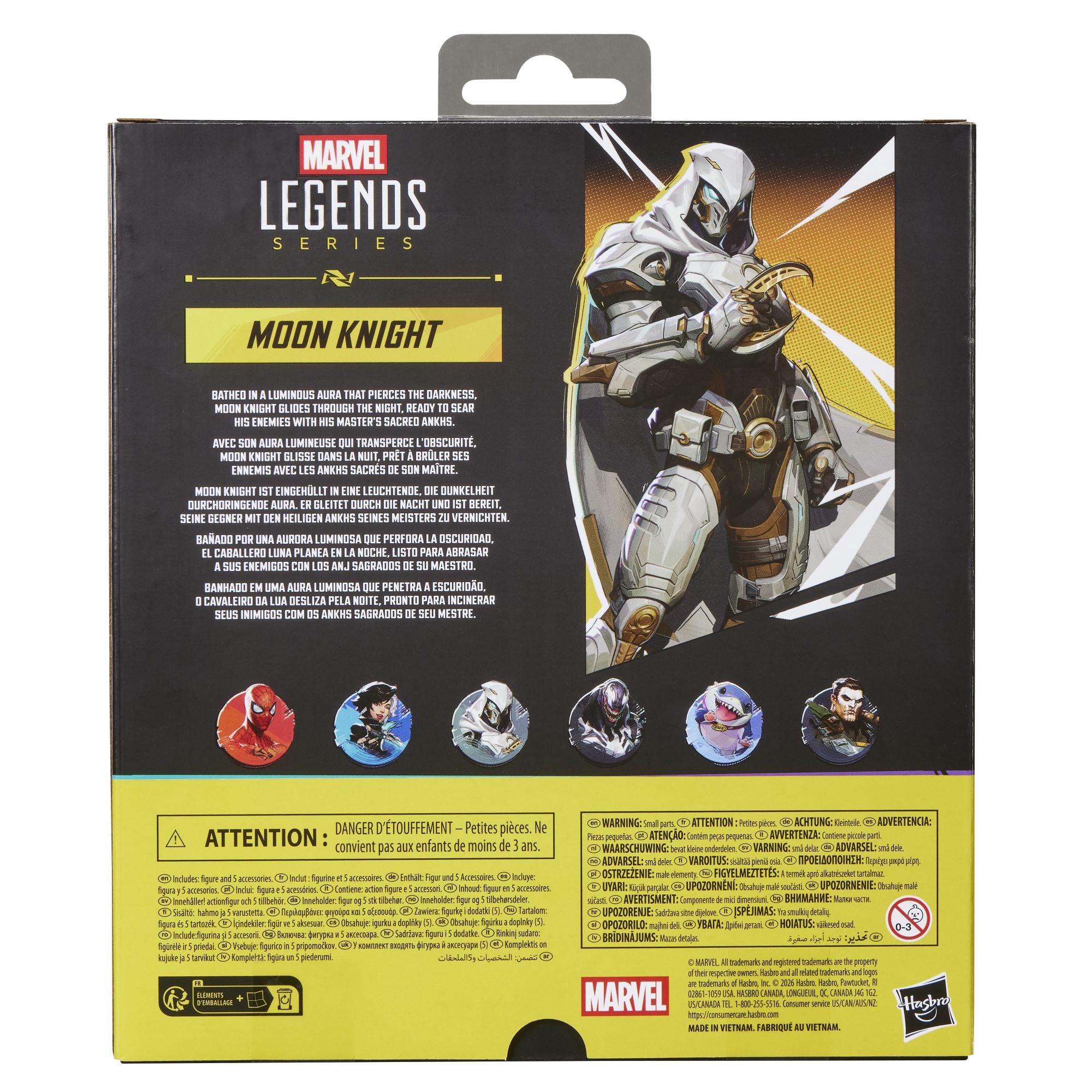 - TEAM-UP WITH A MARVEL RIVALS: The Moon Knight figure is inspired by his appearance in the Marvel Rivals video game where Super Heroes and Super Villains from across the Marvel Multiverse use their incredible abilities to battle