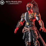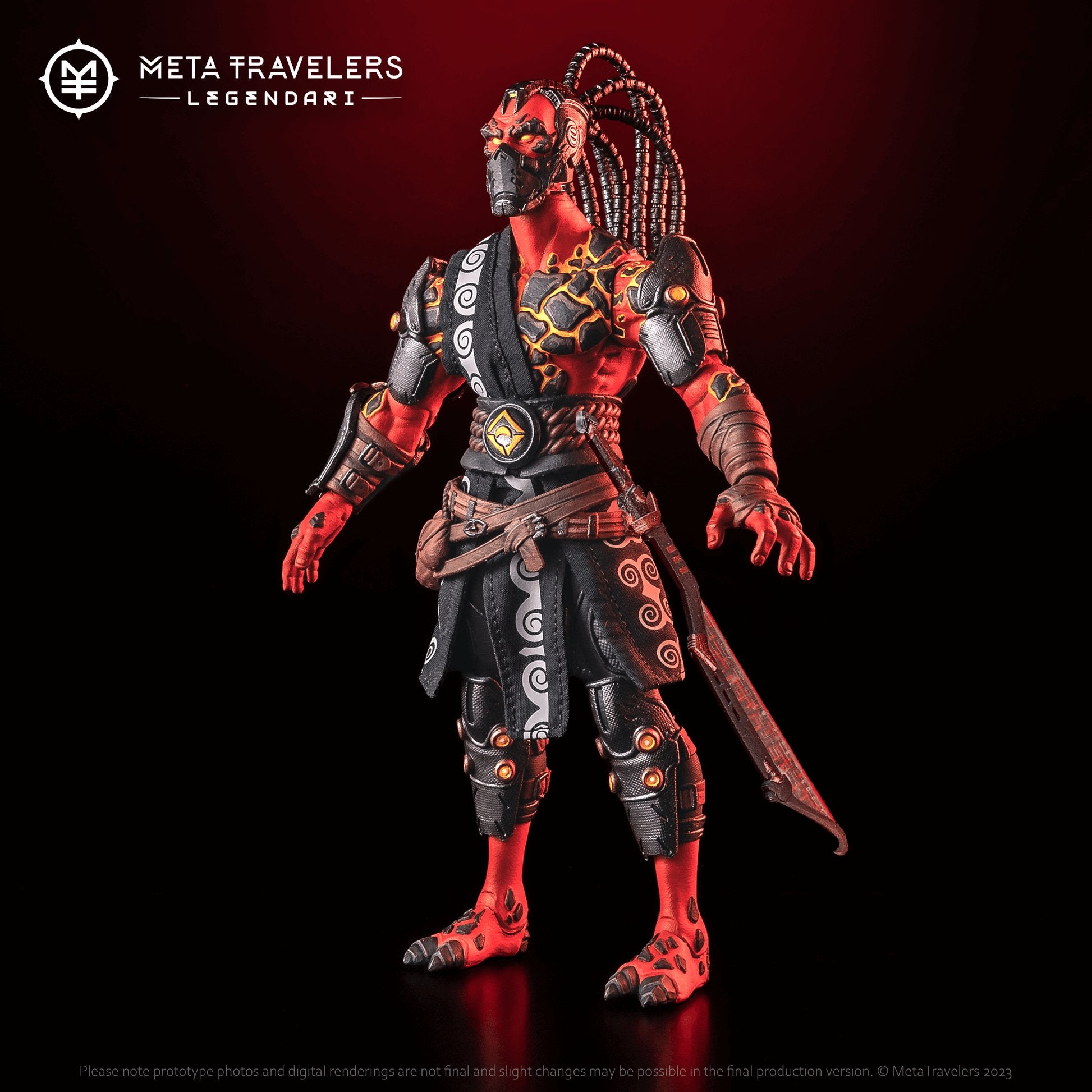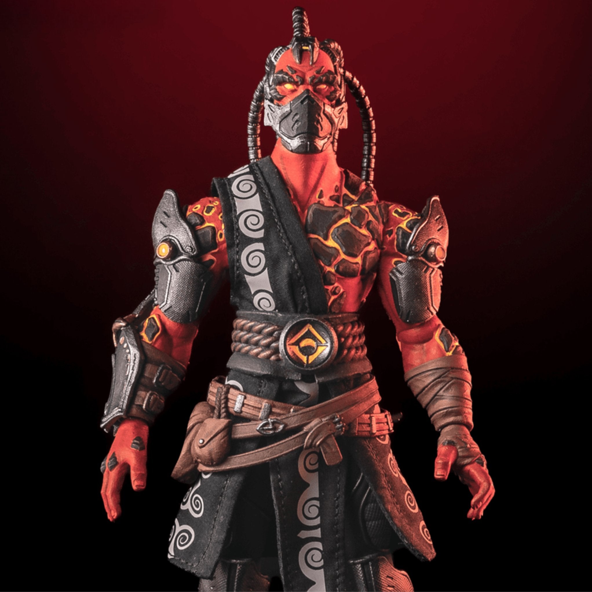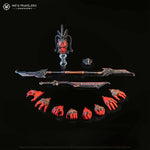 Once a revered Nibiru Praetor, the Spyte Usurper fell to a Spyte infection. Despite this, he retained his memories and skills. Driven by new ambitions, he once sought out an Aeon Tomb World, aiming to confront the guarding Legendari. Secretly allied with the Pale Kings, he brutally defeated the Legendari and seized the UR-Stone. Now, the UR-Stone’s power transforms him into Spyte’s ultimate weapon against the Nibiru. His exoskeleton, crackling with fiery energy, withstands his birthplace’s intense heat. Wearing a mask and helmet signifies his elevated Spyte status. He wields a staff, channeling the UR-stone’s energy to launch attacks. Notably, his ferocity in combat is unmatched. Equipped with Magnetar Blades, his gauntlet slices through time, allowing swift movement through space.