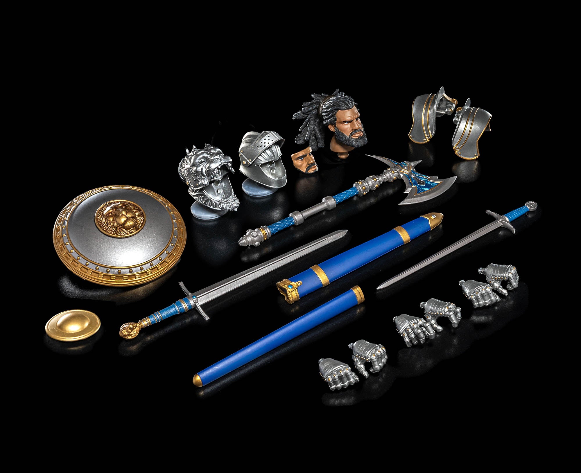 - Accessories: Broad sword and scabbard. short and scabbard, shield with 2 boss attachements, battle axe