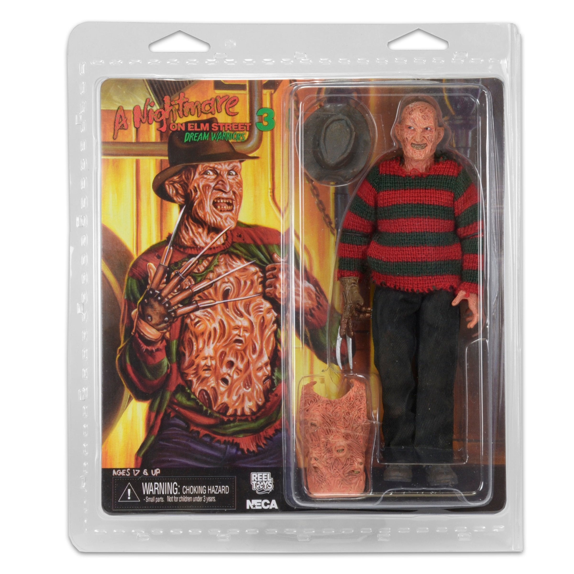 From the cult classic Nightmare on Elm Street horror films, our newest retro clothed action figure is Freddy as he appeared in Part 3: Dream Warriors! Freddy stands 8” tall and is dressed in fabric clothing similar to the iconic toy lines of the 1970s.
