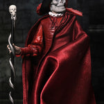 Hiding his disfigured face beneath the skull mask, he spies on Christine and Raoul on the rooftop of the Paris Opera House. This collectible includes a soft goods cloak, large brim hat, and skull staff accessories. Plus, multiple heads and hands, which are interchangeable with other NECA Phantom of the Opera figures (sold separately).